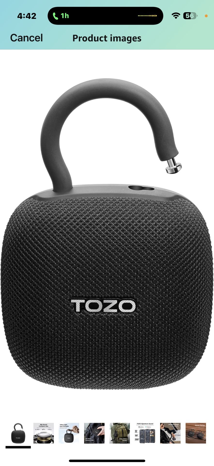 PE1 Portable Bluetooth Speakers with Adjustable Carabiner, Mini Bluetooth Wireless Shower Speaker with IPX8 Waterproof, 32H Playtime Punchy Bass Audio