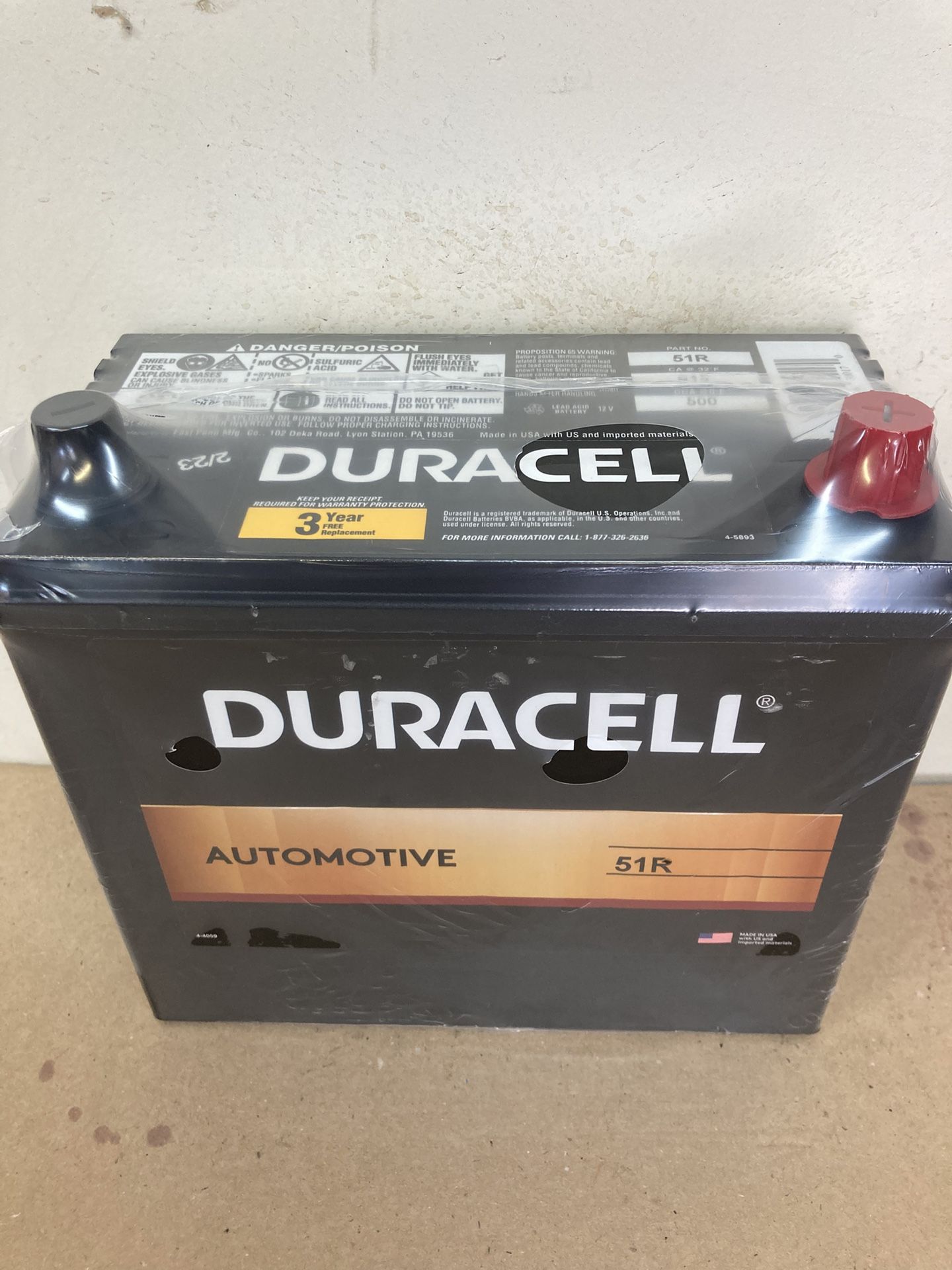 Car battery Dura cell automotive high-performance completely sealed brand new battery size 51R Honda and Acura cars with sound systems price include core exchange. Please send your vehicle info or ask me any question and check my other pictures for more cars and trucks batteries.