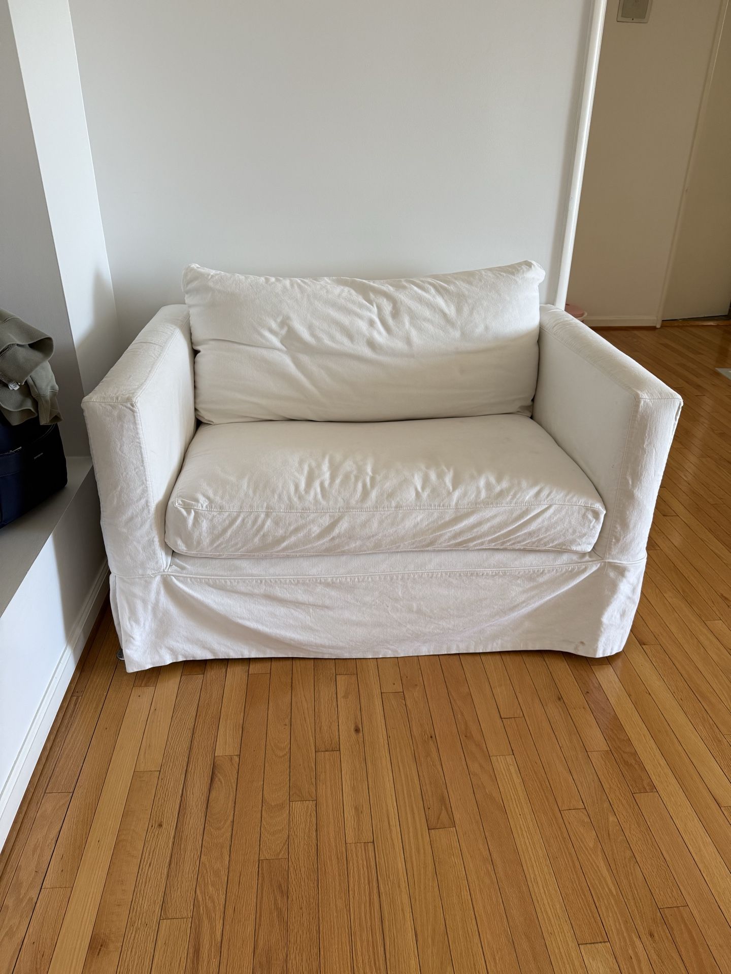 Crate and Barrel oversized Accent armchair Dimensions 52 wide 29 tall 36 deep Great condition. Removable fabric to be able to wash Pick up only in Burbank $300