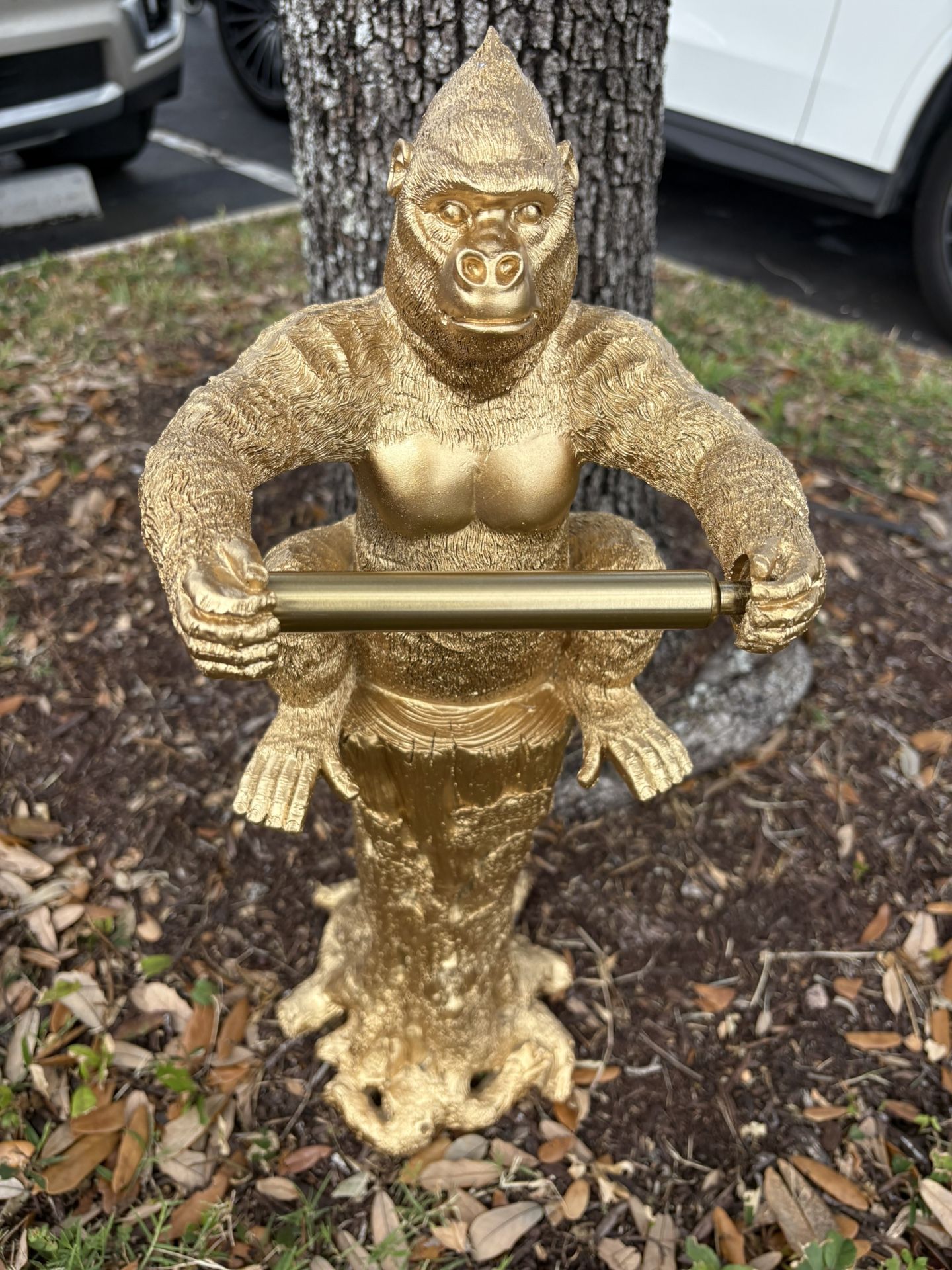 Gold King Kong KK Toilet Paper Holder. Gorilla Ape Chimp Monkey On Tree Trunk. Holds 1 Roll. Also Have Server Waiter Butler TP Dispenser. $55 Each.