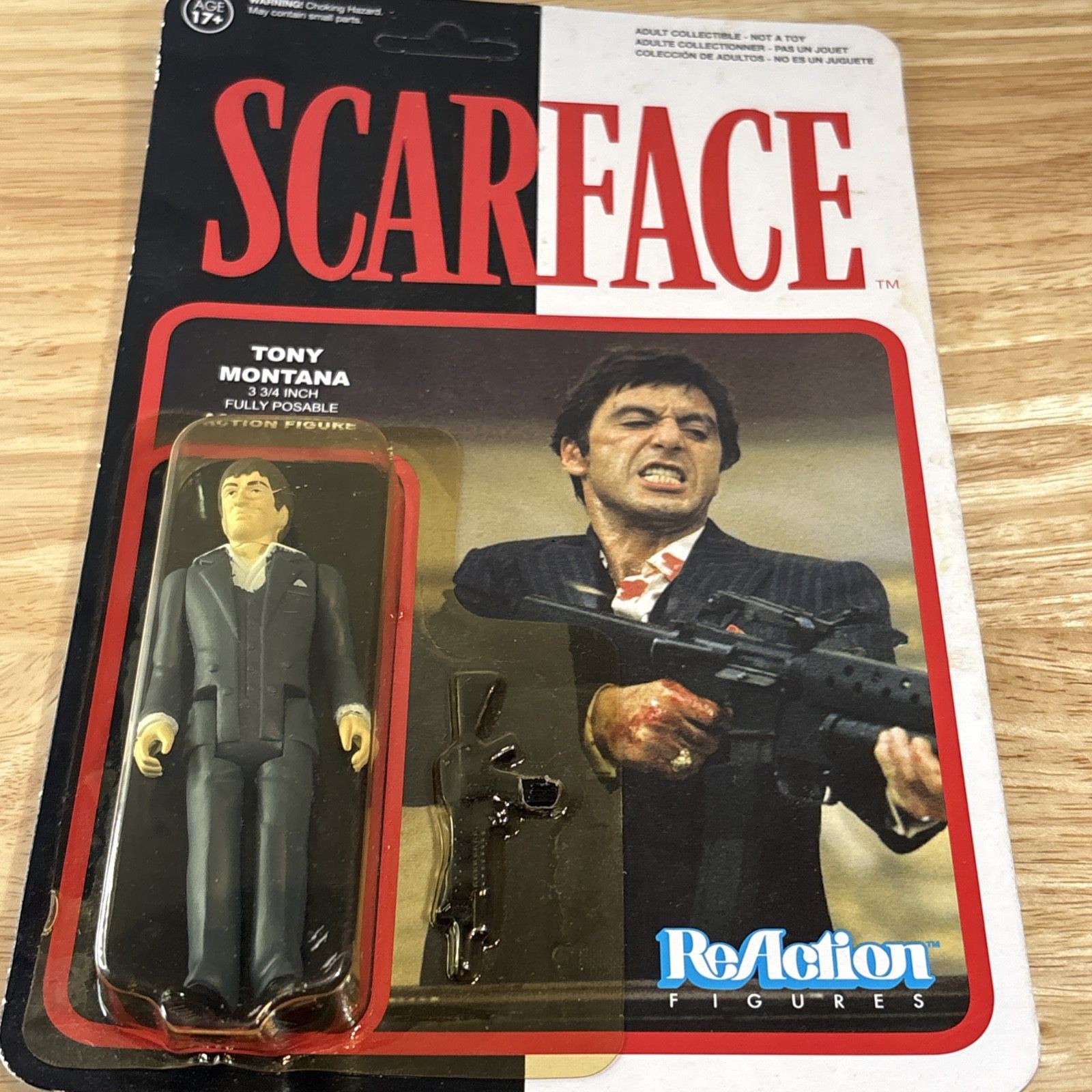 Funko ReAction Scarface Tony Montana 3 3/4” Action Figure New- ADULT COLLECTIBLE These figure is in original box unopened. The box has few scratches. Also the plastic cover-has a minor hole;Please see all photos for measurements and the box condition. Overall looks great and awesome condition for its age.