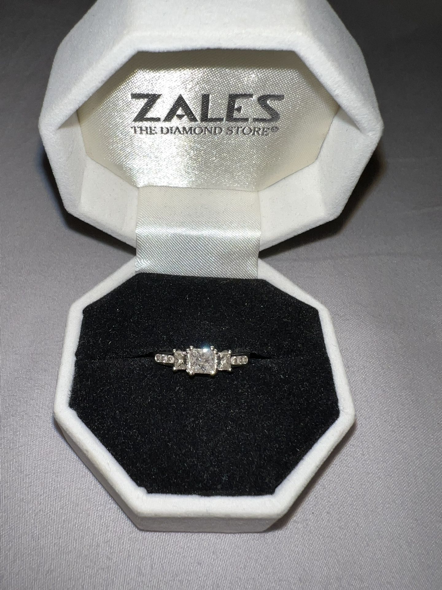 Zales Princess Cut Ring - 1 CT. Past, Present, Future Collection - 14 K White Gold