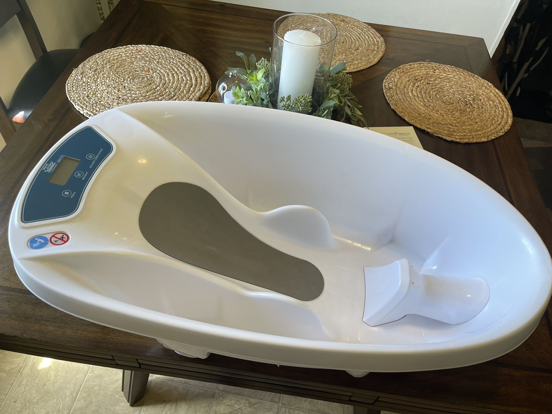 Baby Patent Aqua Scale 3-in-1 Digital Scale Water Thermometer and Infant Tub. I payed $70 at target and use really few times