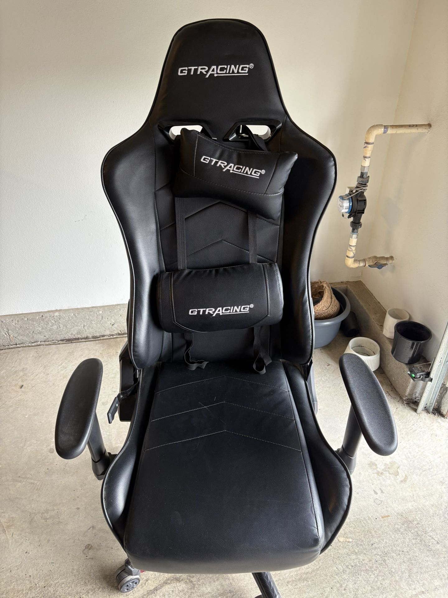The chair is still in super good condition no deep damage/ or deep scratches. It been sitting in my garage Pick up only