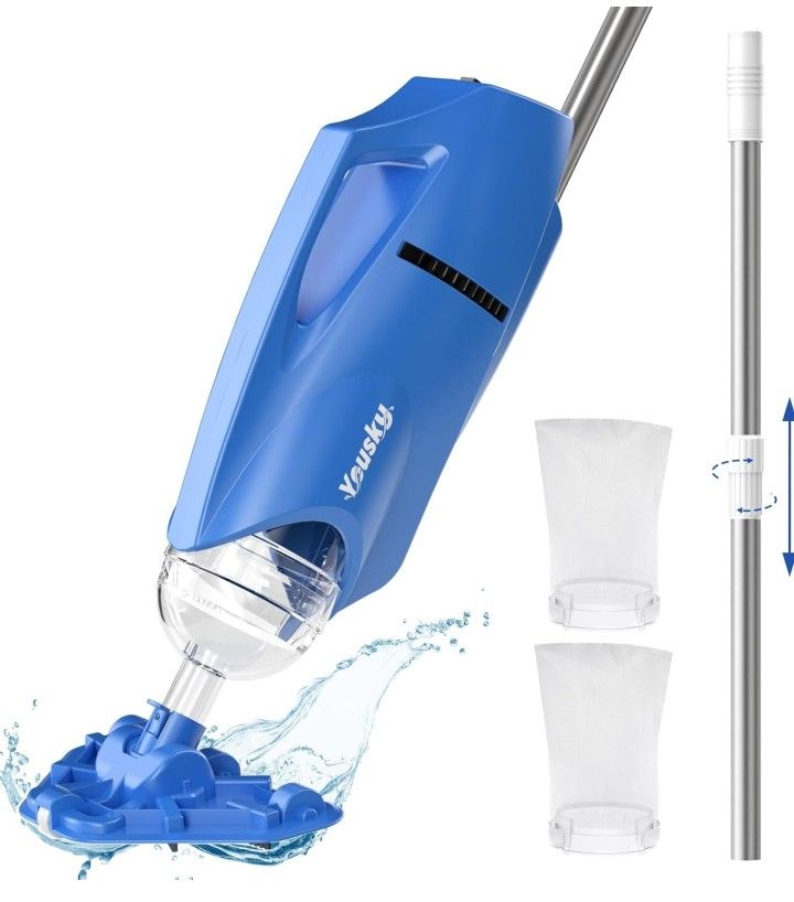 Powerful Suction for Effortless Cleaning: Dive into a spotless pool effortlessly! Our handheld pool vacuum harnesses powerful suction to swiftly eliminate debris, leaves, and dirt, with a maximum flow rate of 18 gallons/min! ensuring a thorough cleaning experience that saves you time and effort. Cordless Convenience, Versatile Cleaning: Experience the freedom of seamless cleaning! Our cordless handheld pool vacuum eliminates the hassle of tangled wires, providing unparalleled convenience. With two different brush heads, you can effortlessly reach every corner of the swimming pool, achieving comprehensive cleaning results. Extra-long telescopic pole, Time-saving cleaning:The manual pool vacuum comes with a telescopic pole, ranging from a minimum length of 20 inches to a maximum of 69 inches, helping you clean the most hard-to-reach areas. Long Battery Life, Uninterrupted Cleaning: Say goodbye to interruptions! Our pool vacuum for above ground and inground pool features a robust rechargeable battery, charging only takes 2.5 hours, allowing you to clean your entire pool in one go. Enjoy uninterrupted sessions and revel in the beauty of a continuously sparkling pool.