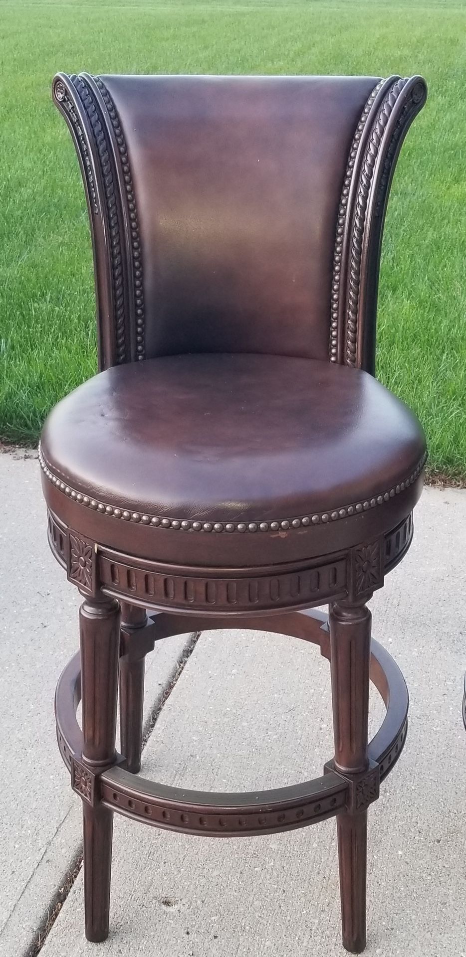 Great condition Frontgate Manchester leather swivel barstool, bar height. Currently sells for $399 online. Pet free and smoke free home.