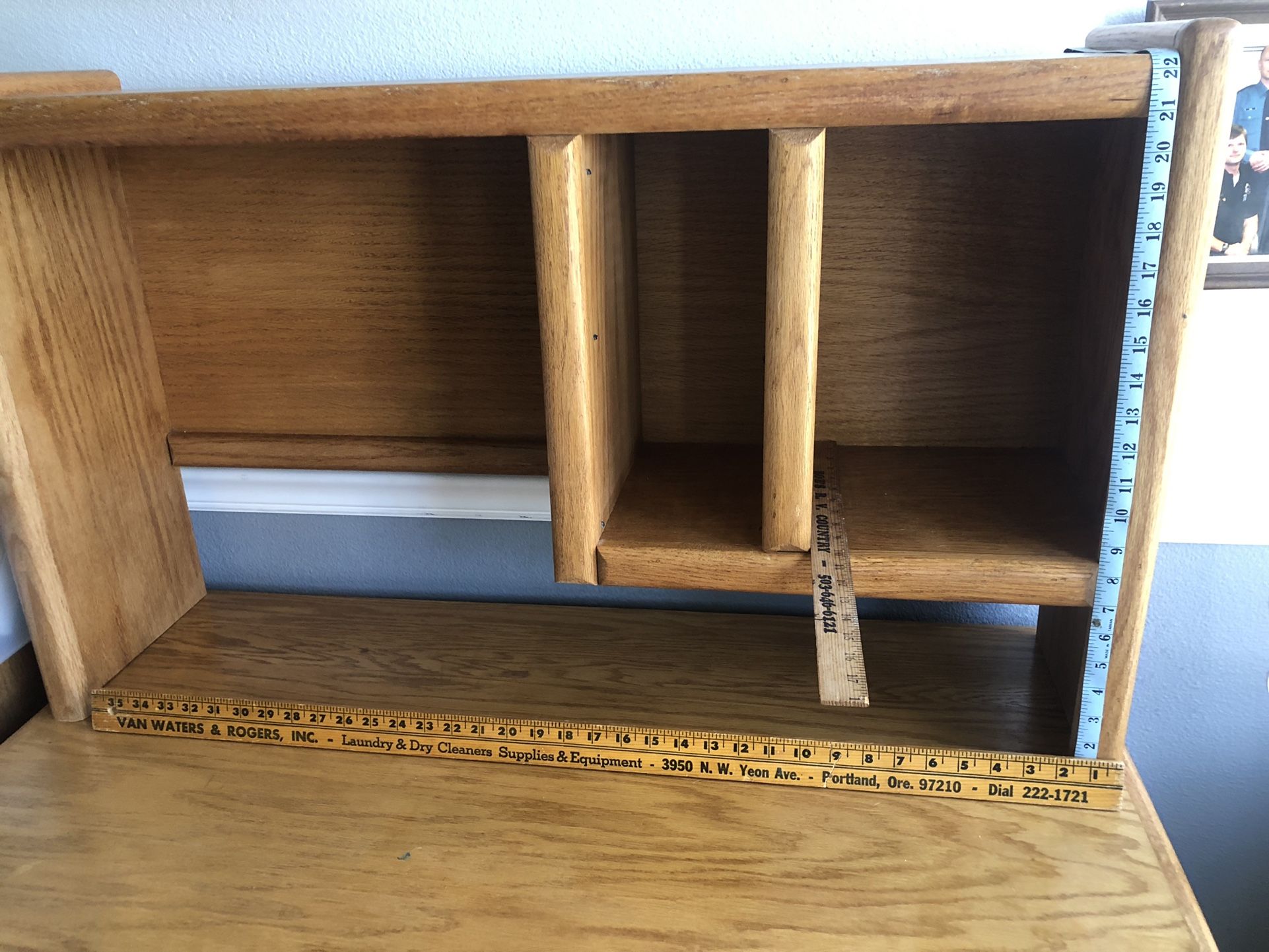 Solid oak desk topper. 38” wide, 23” tall, 10” deep. In great condition, no scratches or damage.