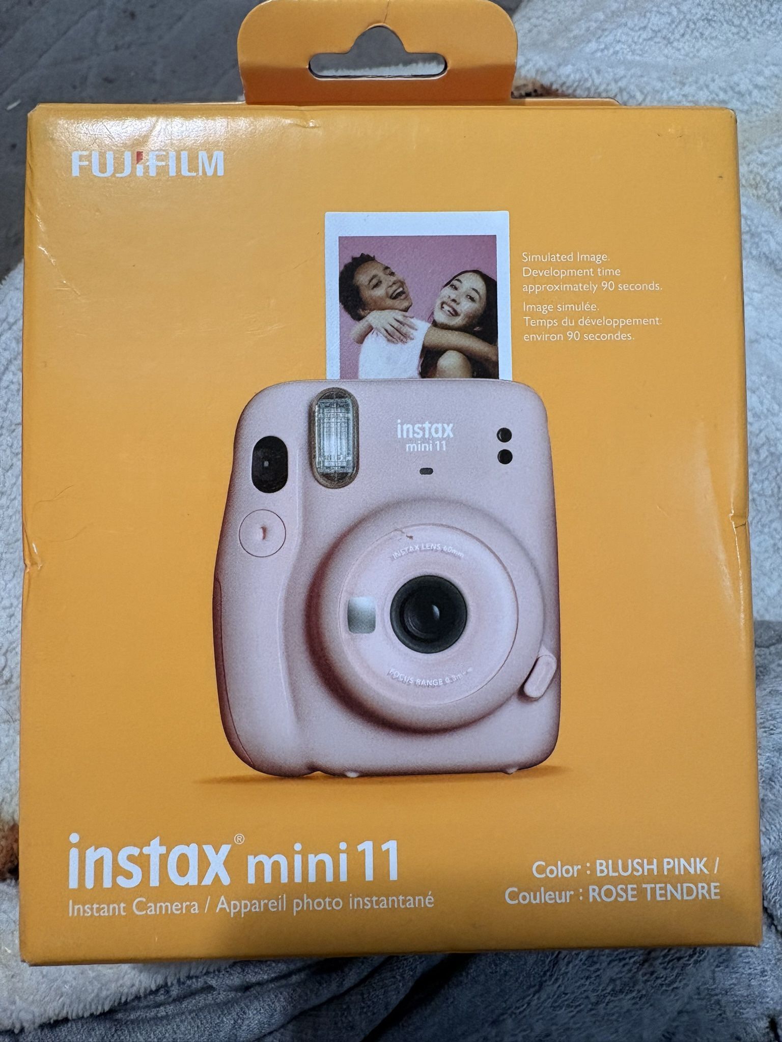 Instax mini camera in blush pink. it has one touch selfie mode and automatic exposure. Takes instax mini film. Includes accessories, slightly used.