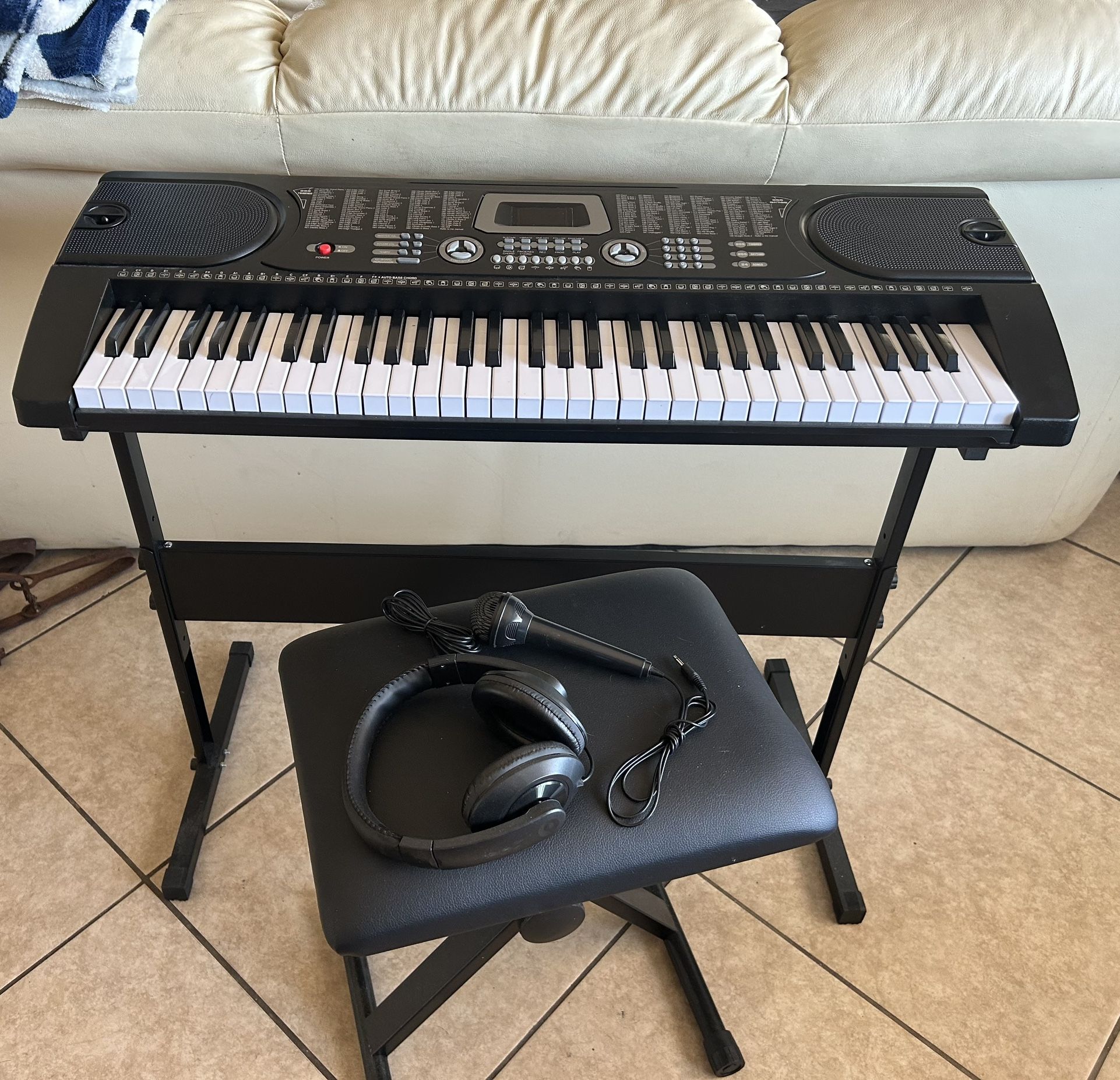 Brand new electric keyboard Has bench, headphones, microphone
