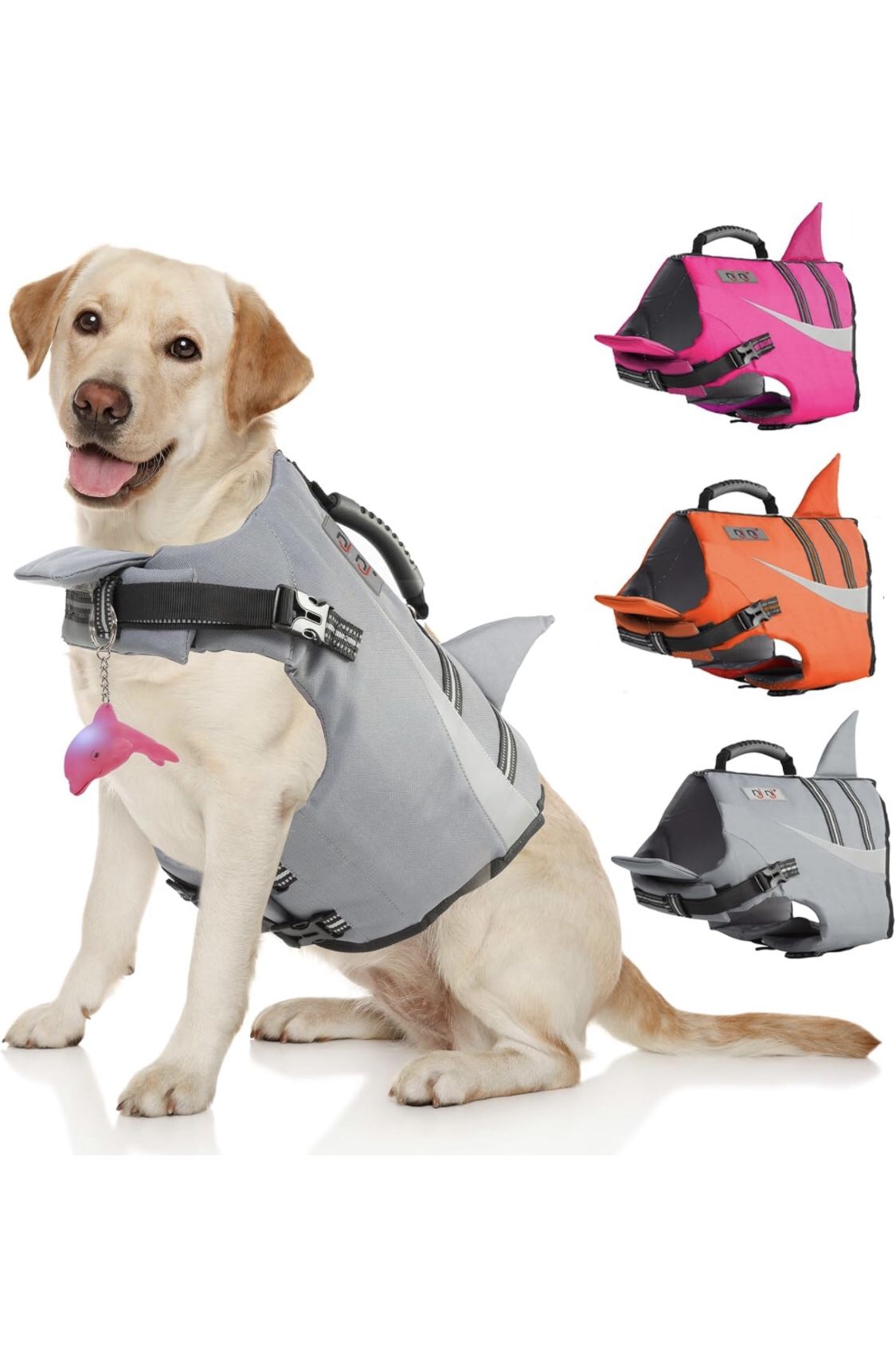 Dog Life Jacket - Pet Safety Vest with Reflective Stripes for Swimming and Boating, X-Large Shark Float Coat and Preserver for Small,Medium,and Large Dogs,Water Floatation Vest with Rescue Handle