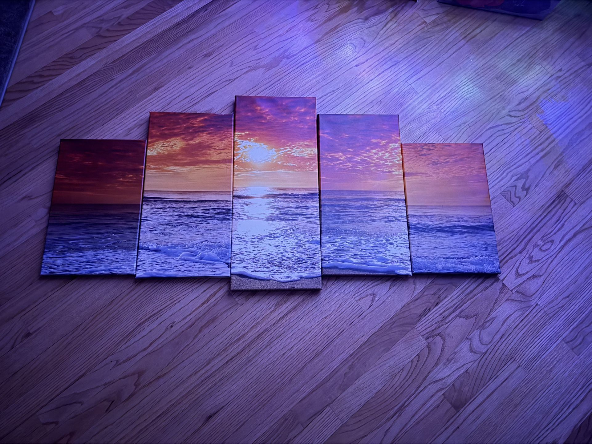 5-panel canvas wall art with ocean sunset design. Good condition, no damage. Great for living room or bedroom. Pickup only.