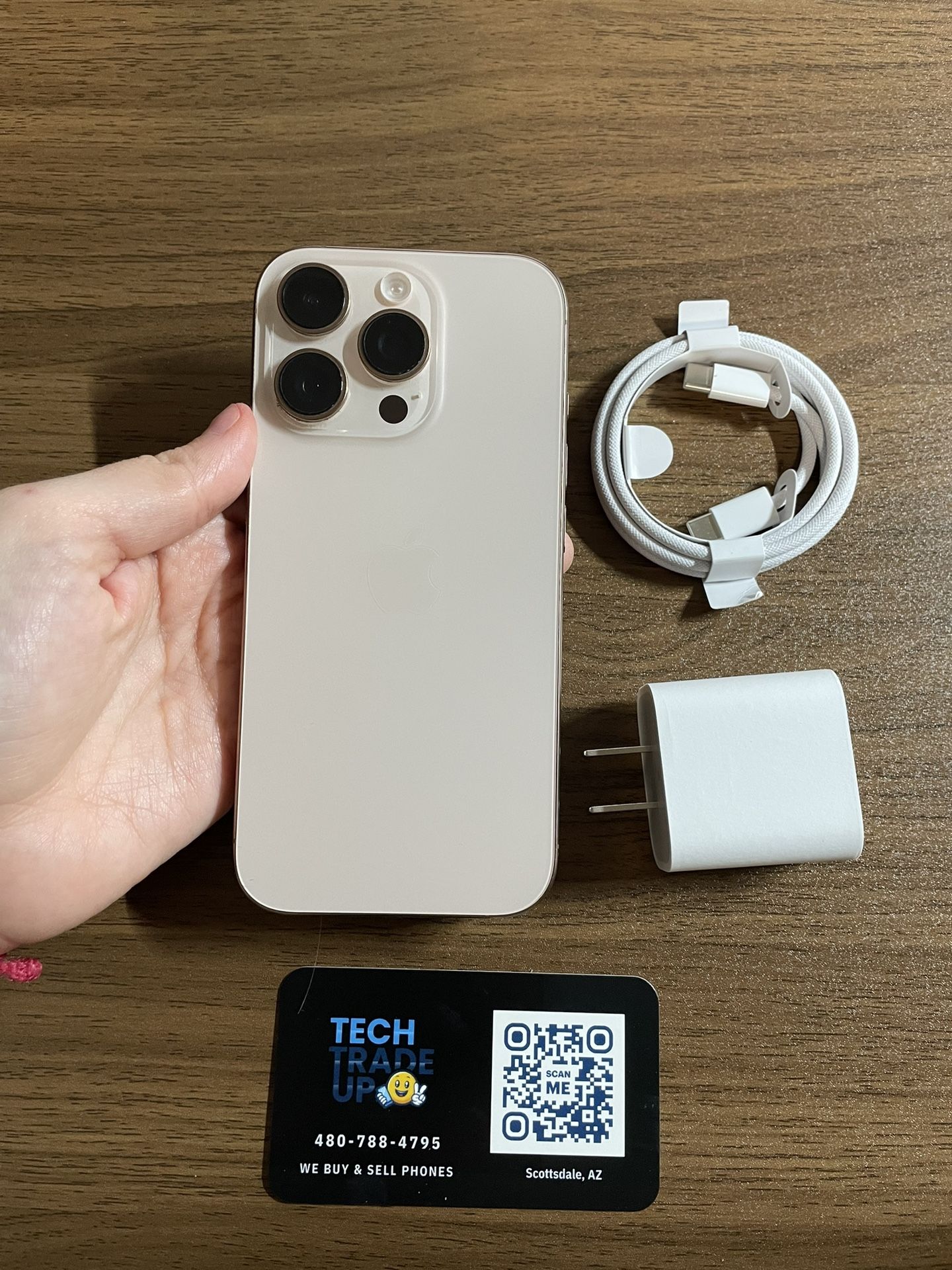 iPhone 16 Pro 1TB Cricket Pink Condition 9.5/10 Battery life 98% 15-day warranty All original parts 100% functional Financing options available Includes charging cable, charger, case, and screen protector (if in stock) Student discount ($10) *Best price for cash* Zelle, Cash App, Venmo, Apple Pay Card payments accepted via Square (taxes included; ID required with matching card). Includes: Premium cases available for $20 Kits available that include a clear case, two screen protectors, and camera lens covers for $25 Apple fast charger brick available for $10