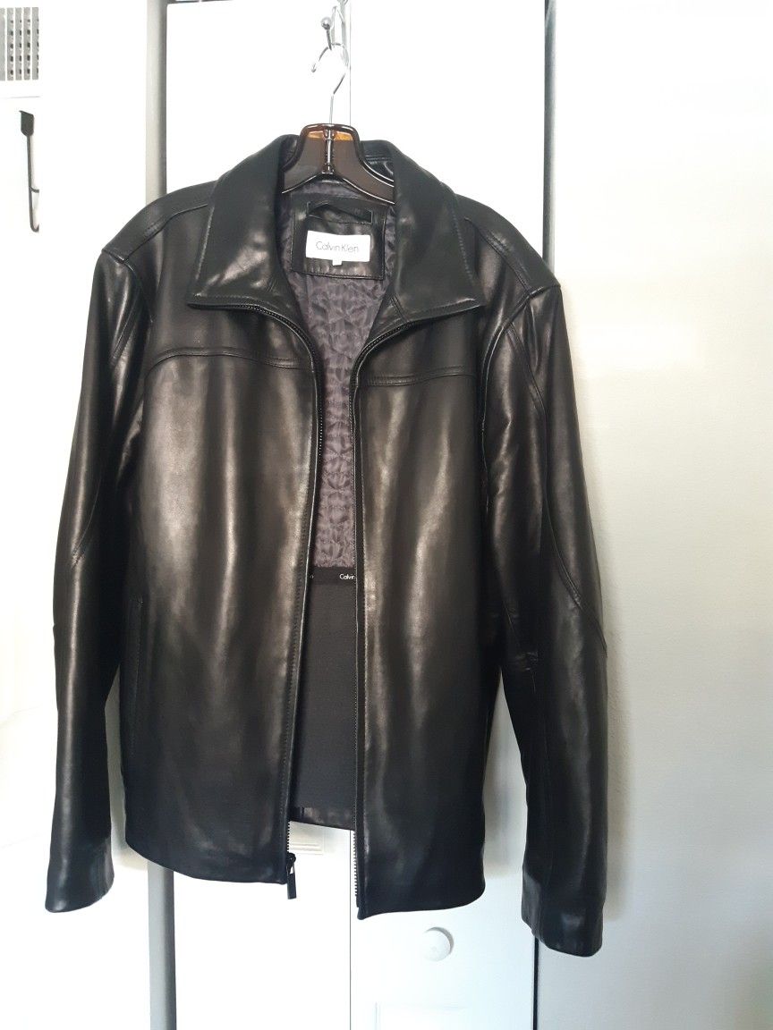 CALVIN KLEIN REAL LEATHER JACKET, SIZE M IN EXCELLENT CONDITION