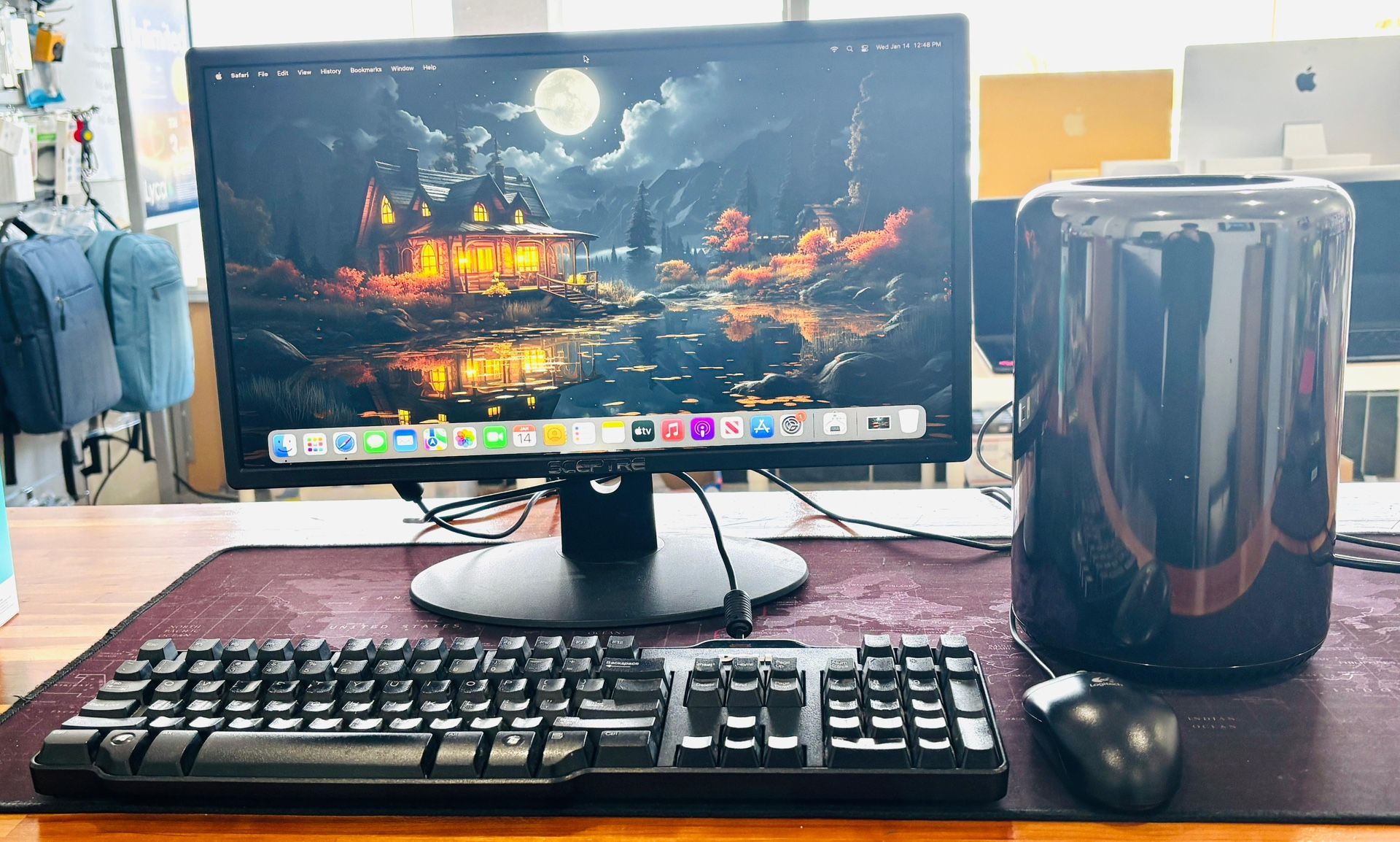 Hi, I am selling Apple Mac Pro Trash Can, Late 2013. I factory reset it, so it's like new, and all accounts and data is removed. It is fully functional. You can come and test it out, no issues. It is in excellent condition. Monitor is not included *KEY FEATURES:* This is perfect for: -Students -Work -Studios -Music Production -Photo//Video Editing -Audio Recording *SPECS*: -MacOS Monterey 12.7 -3.7 GHz Intel Xeon E5 processor -32 GB RAM DDR3 -256 GB Flash Storage -AMD FirePro D300 2GB VRAM Graphics -Bluetooth// WiFi// iMessages *PORTS:* Four USB Ports// HDMI Port// Two Ethernet Ports// Six Thunderbolt Ports// Headphone port. Contact me if interested. PLEASE MESSAGE US BEFORE COMING TO ENSURE AVAILABILITY Thank you.