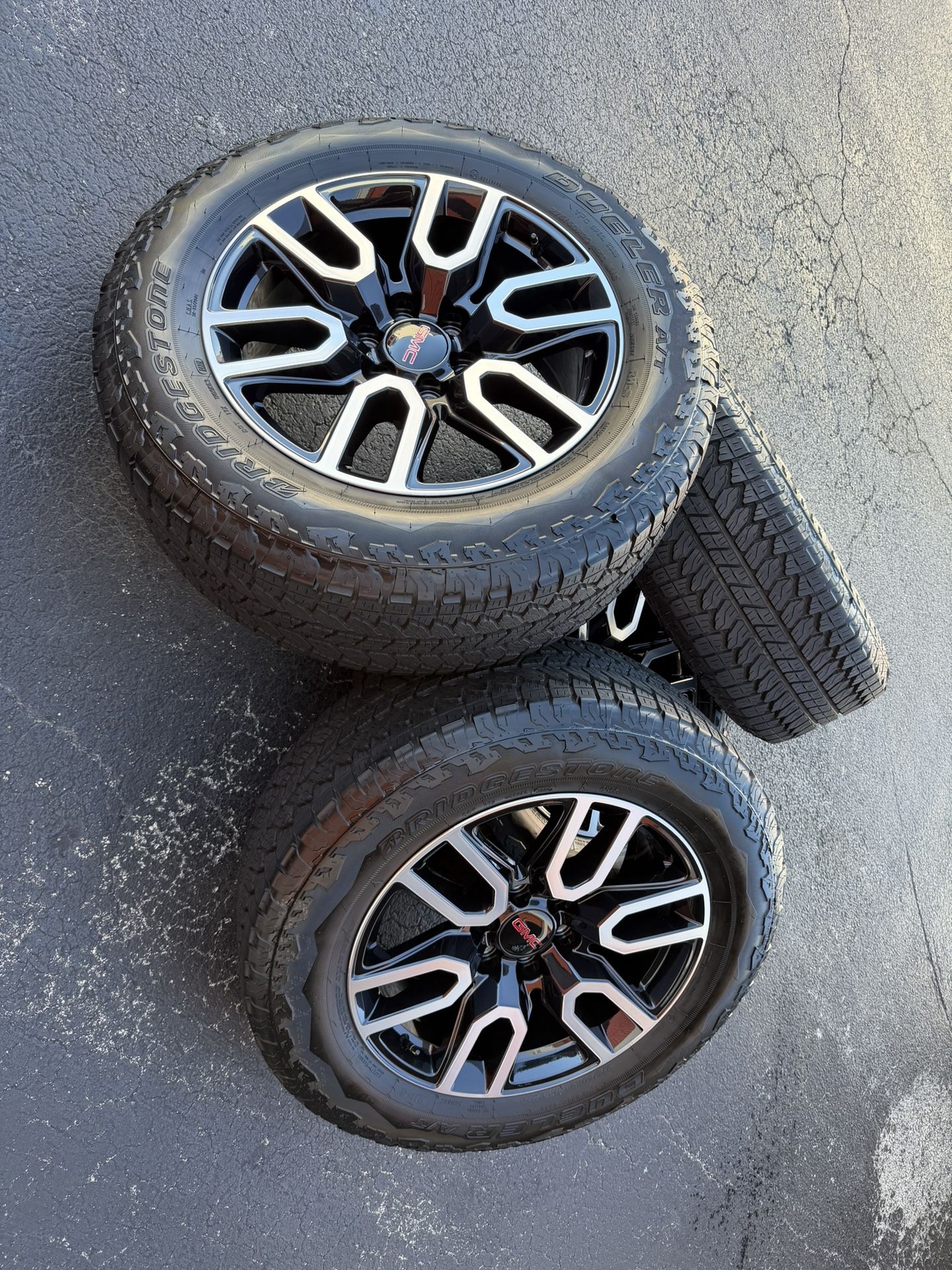 Selling a brand new OEM 2026 Gmc Sierra 1500 At4 wheels and tires. This premium wheels will give you an aggressive look to your truck. ( Please see pictures ) *TPMS SENSORS ARE NOT AVAILABLE TIRE BRAND - BRIDGESTONE A/T TIRE SIZE -275/60/R20 DOT - 2025 Please don’t hesitate to contact me if you have any questions. CASH/ZELLE HABLO ESPAÑOL