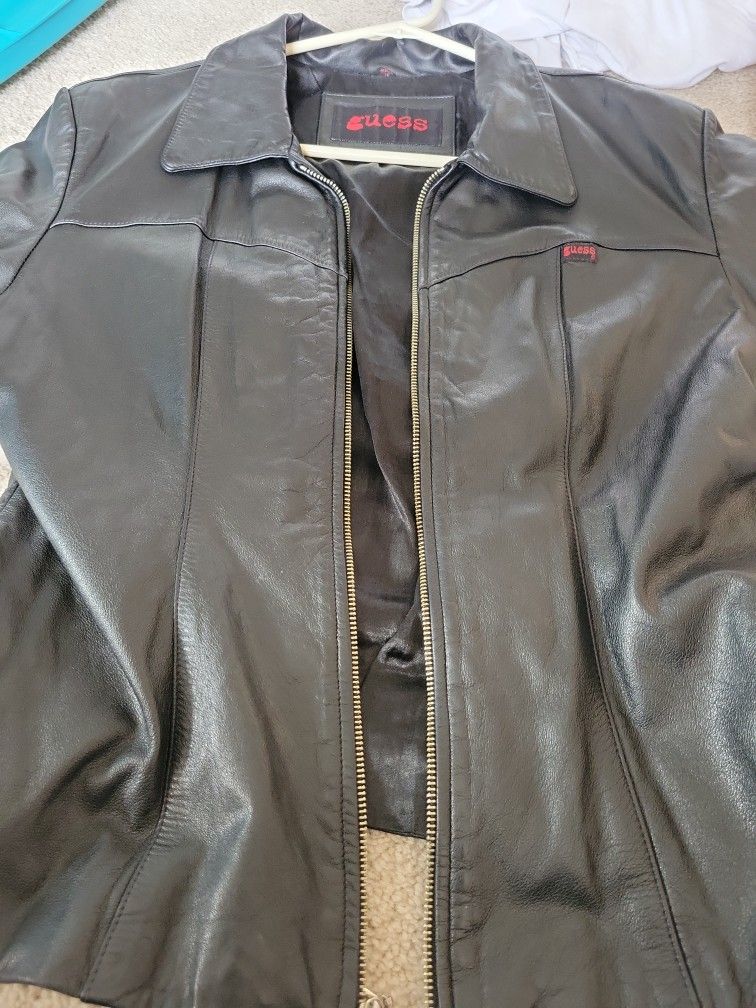 Genuine leather jacket Guess vintage. Like new condition no rips or tears or worn marks. This jacket reg price 499.00 the zipper needs to be adjusted which reflexes in price being offered. Jacket is Large.