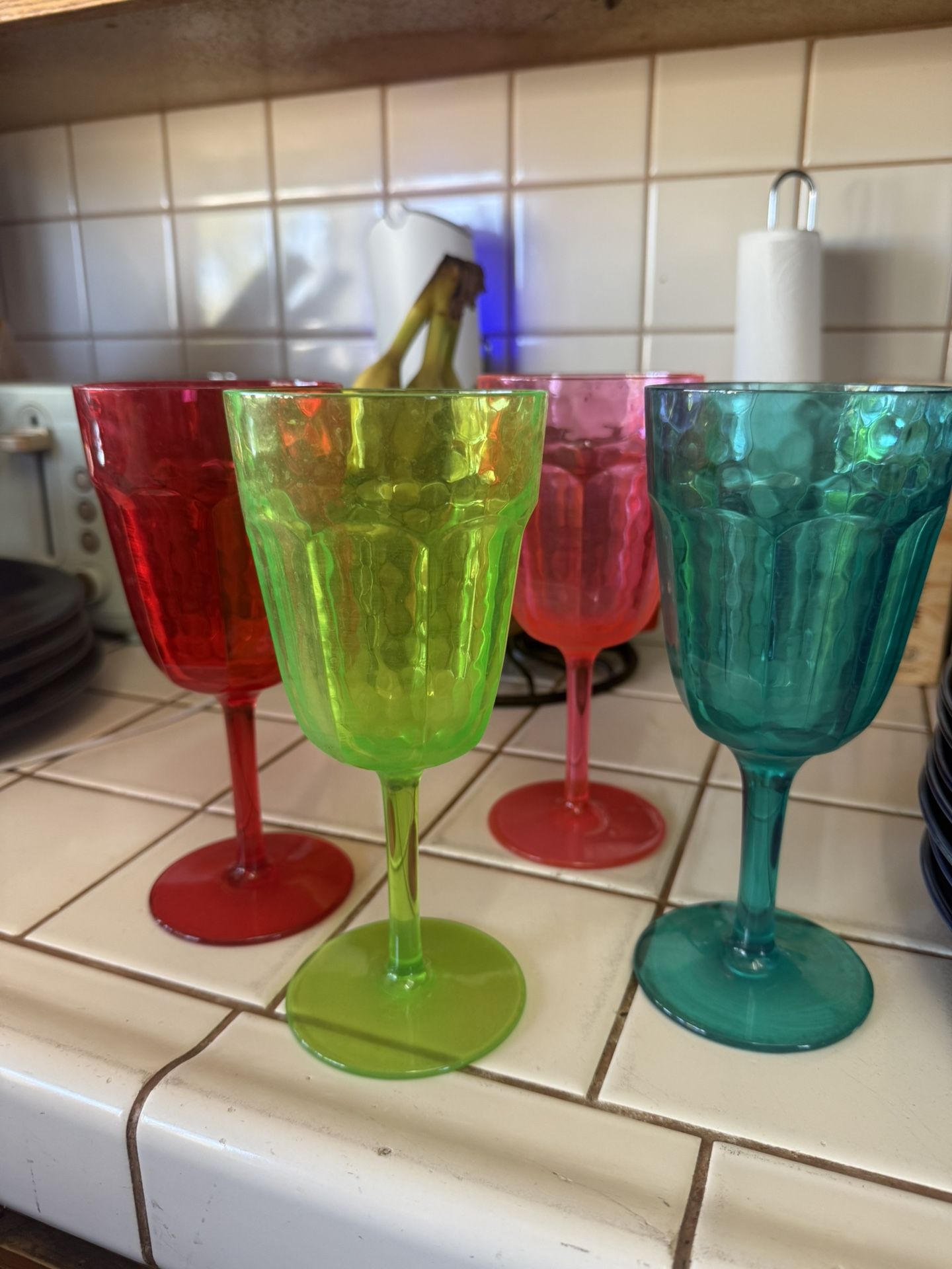 Multi colored plastic wine glasses