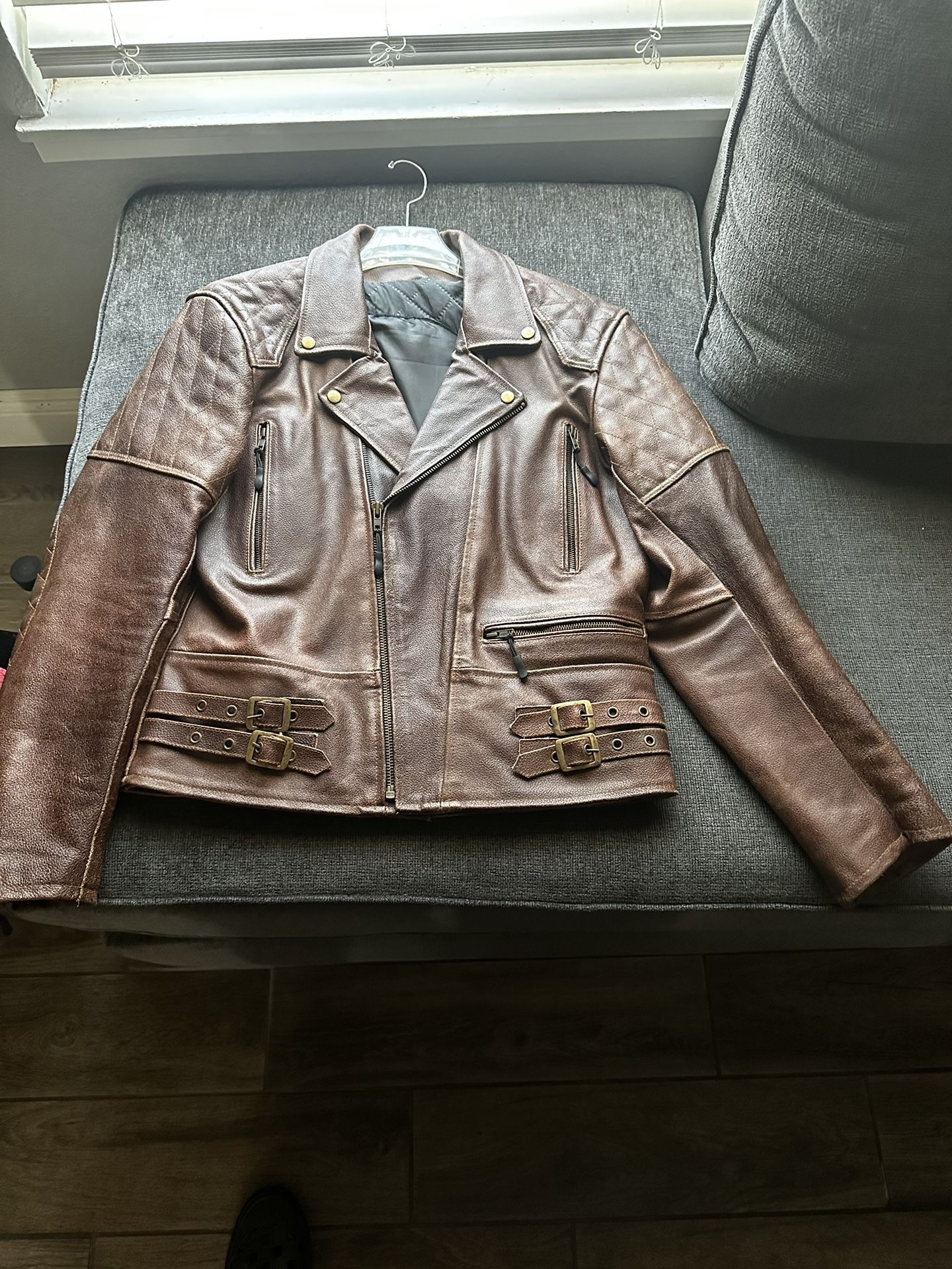 Have up for sale a riding jacket that I’ve had for some years, only wore it once, it’s in near new condition. Jacket is a size med and has a nice tight fit to it. Made a leather jacket but still feels great and has back and shoulder padding. Perfect for that cafe racer look!