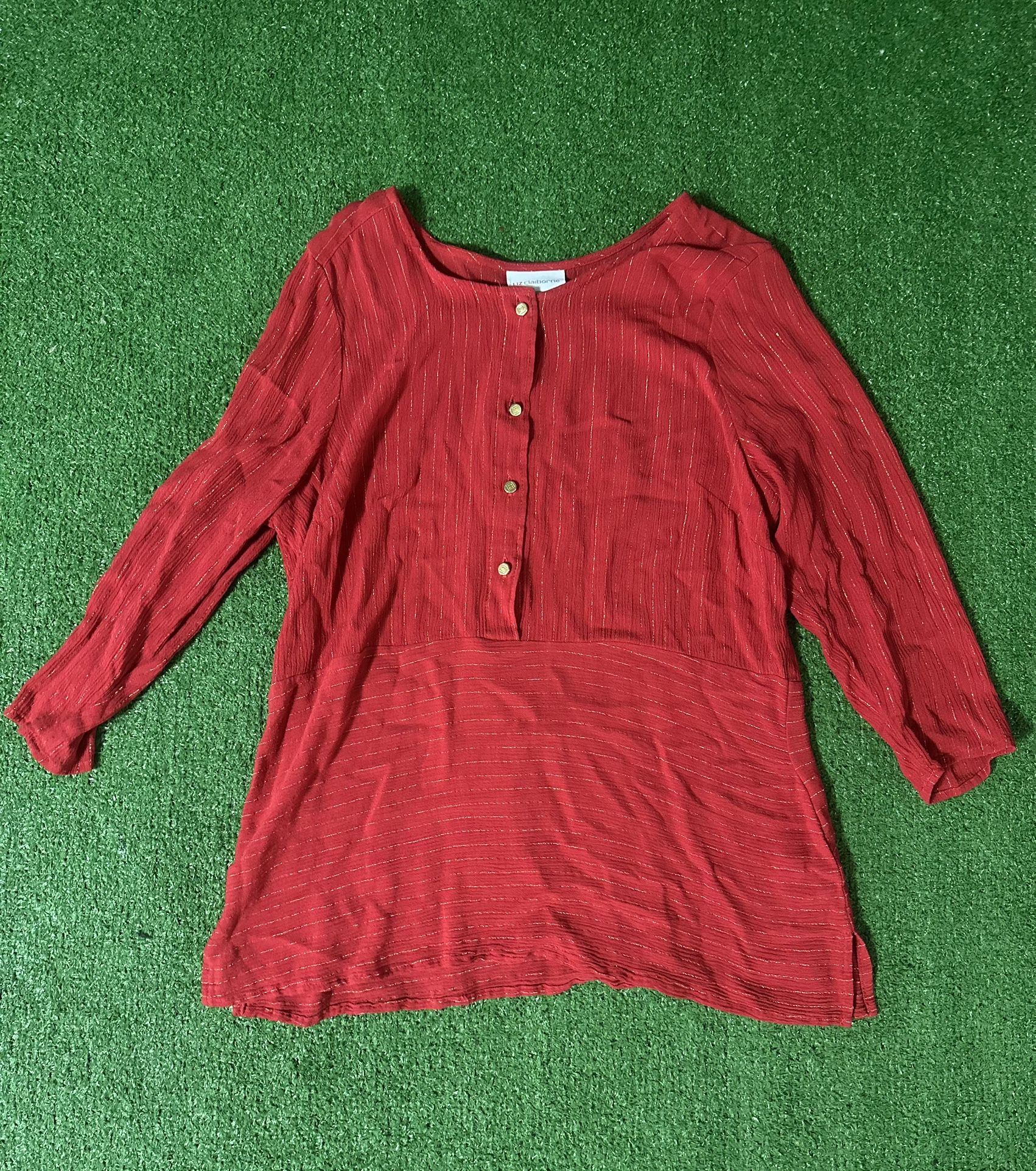 Liz Claiborne Red striped button-up shirt with a boho vibe size M