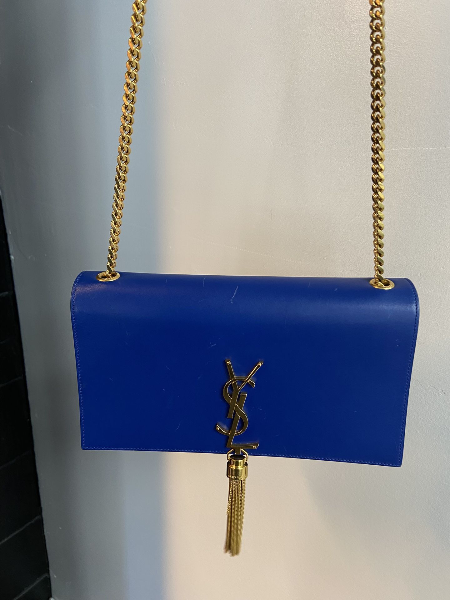 Saint Laurent Blue Calfskin Leather Tassel Bag