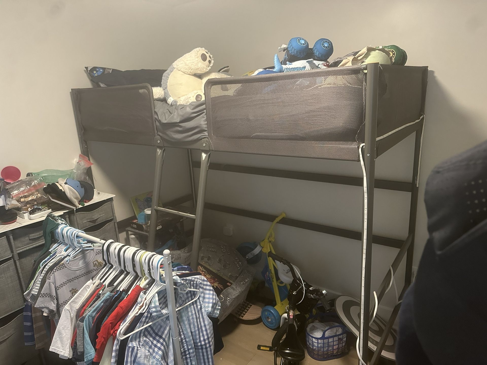 No damage, it can be broken down slightly or all the way to fit in a car (I put it in a Kia Sportage). Just the silver bed frame, not the mattress or anything else in the pic. Pick up on the oceanfront VB only. I can help break it down.