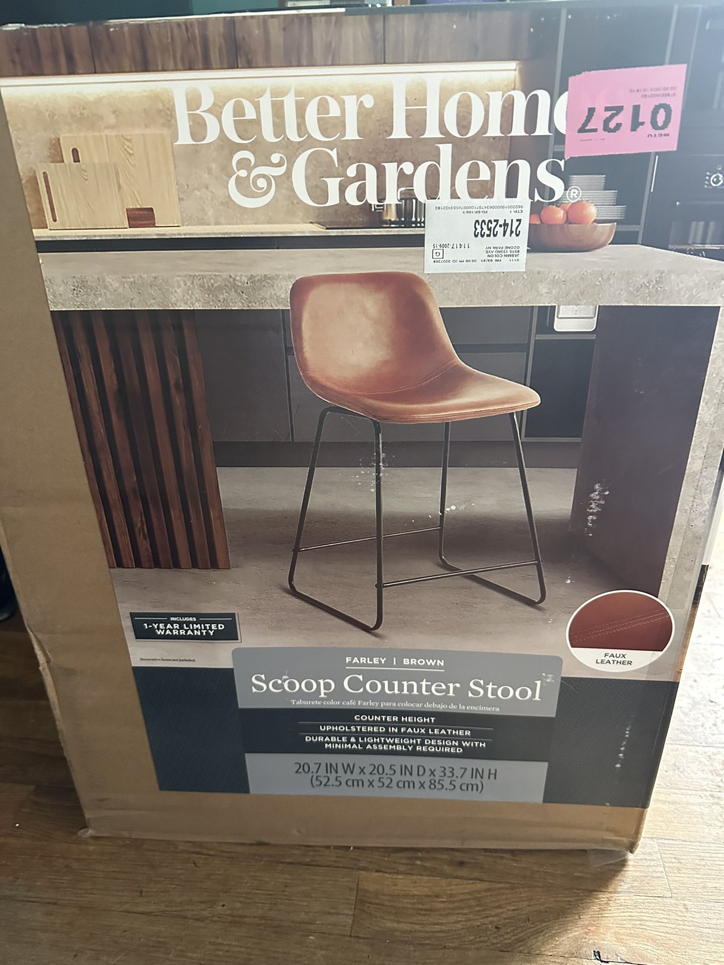 Scoop counter stool. Brown. Faux leather.