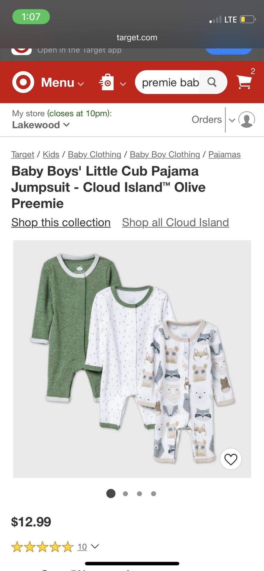 Target brand cloud island 3 preemie outfits $10 obo porch pick up Tacoma/parkland area.