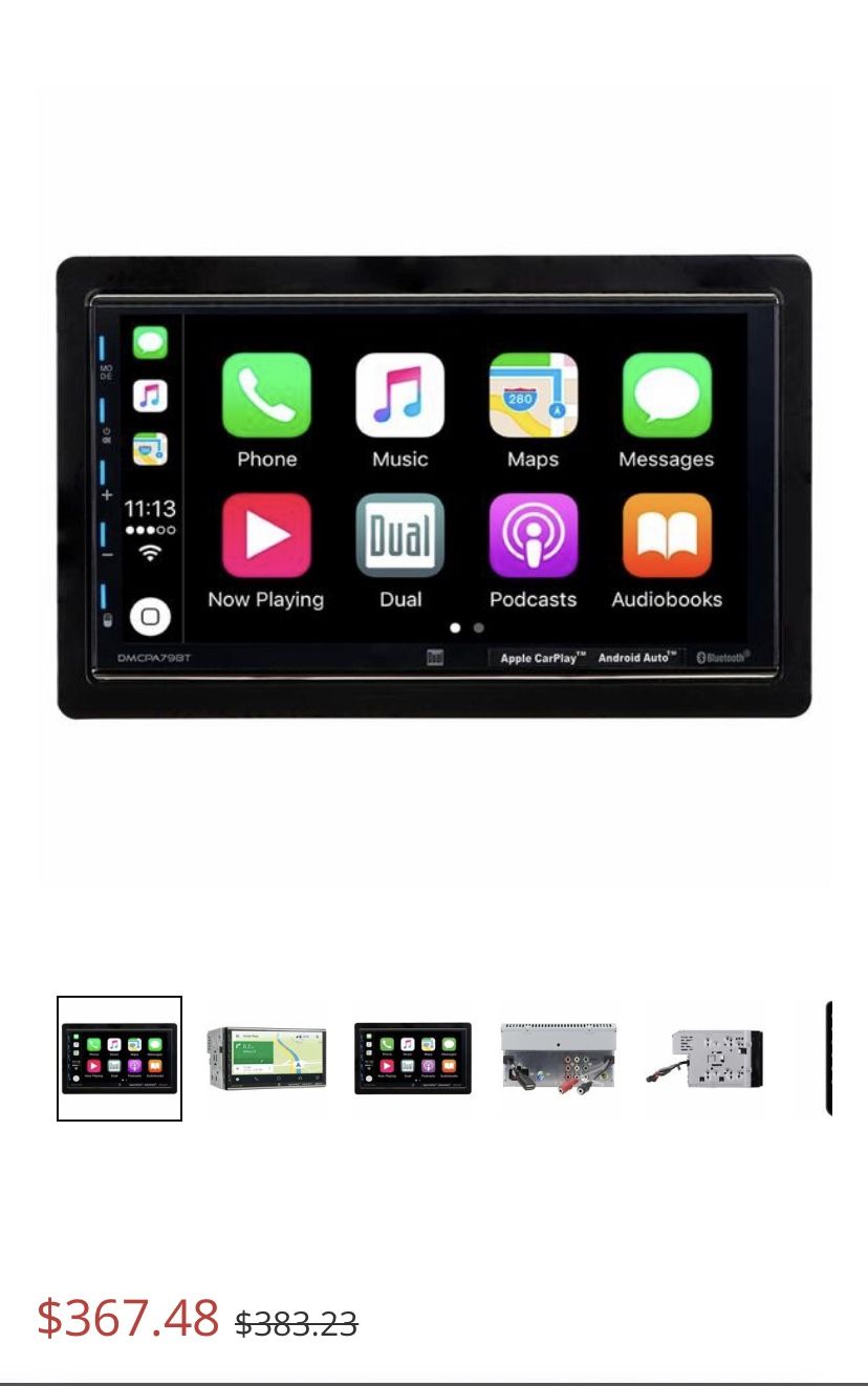 7 in LCD display 800 x 480 resolution Apple CarPlay and Android Auto Built-in Bluetooth for music streaming and hands-free calling Rear A/V input 1 amp USB charging and playback port Direct USB control for iPhone/iPod Rearview camera input Aux input Steering wheel control compatible Brand: Dual ElectronicsDual Electronics 7" Product Dimensions:10.5 x 6.75 x 10.5 inches MAKE AN OFFER