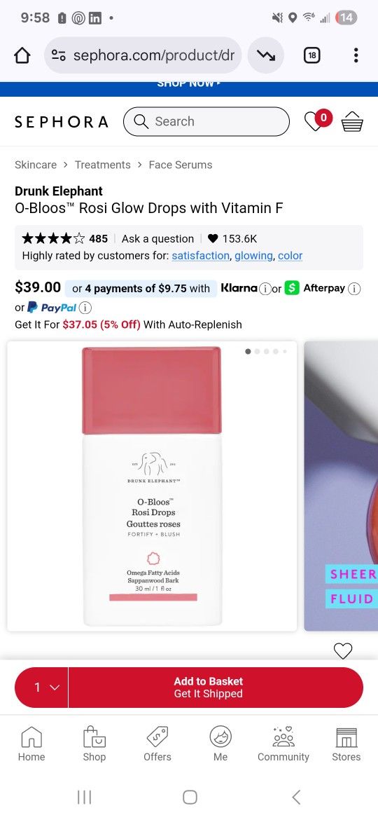 Brand new DE Rosi Drop This omega-rich serum adds a rosy allover flush while supporting healthy barrier function for a natural day-in-the-sun look (without the sun damage). Pick up in San Jose near Regional Hospital 95116