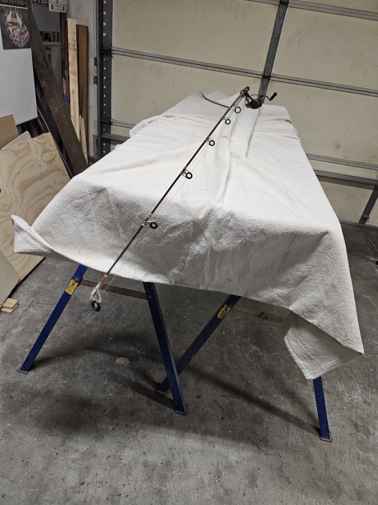 7 foot Fenwick fishing rod polished copper handle. 2 pieces the male and female ends are perfect no cracks or damage. Fast Action - Medium Heavy 8-20 pound test line 3/8 - 3 Oz 0-30 Gram Lure thrower Kast King Godzilla 2000 reel Hard to find Fenwick first come first serve, no reserves. Reel currently has mono but I can load braided spider wire if requested.