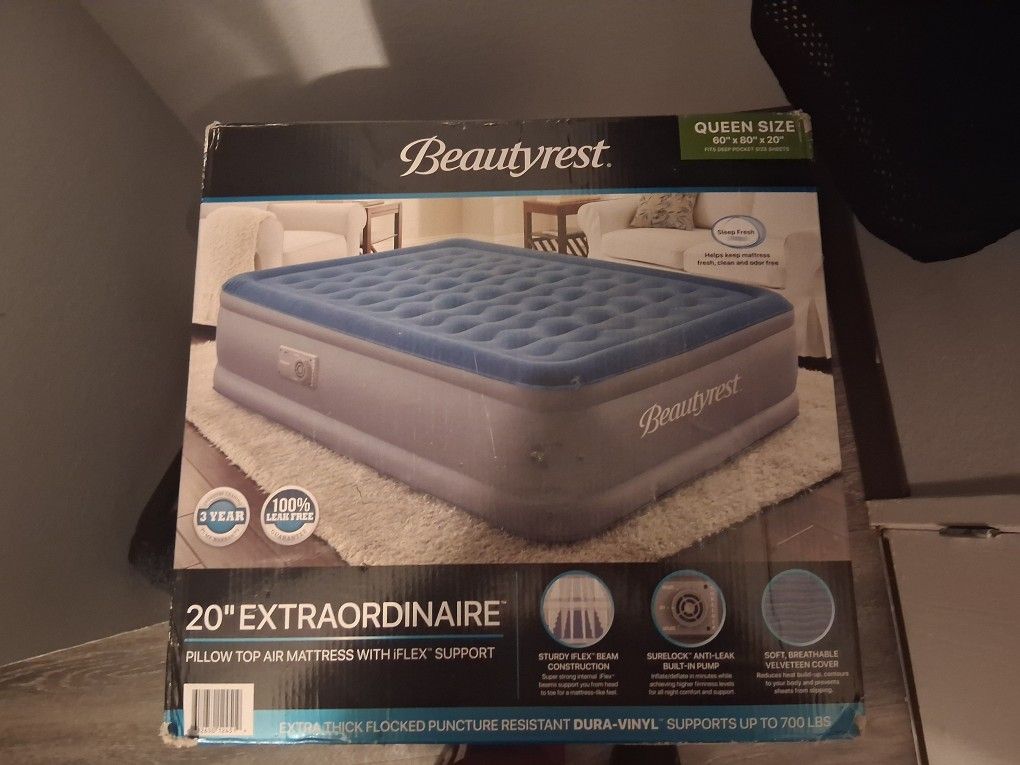 Got a 20" Queen Sized Pillowtop Beautyrest Air Mattress with Flex Support for sale. Full sized battery powered air pump for an extra $10. Asking $40 OBO