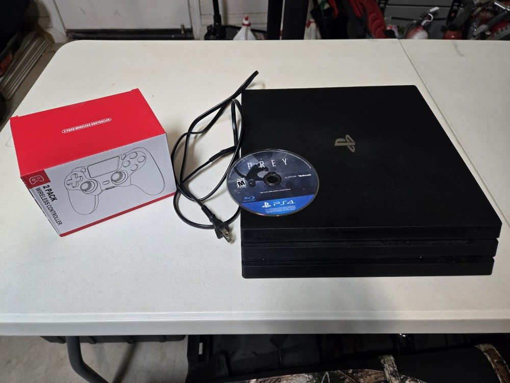 Playstation 4 Pro - 1 TB storage - Prey video Game - 2 new controllers (used once to factory reset console) - Factory reset - Power cable