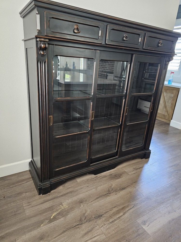 Black china cabinet.w glass shelf. Black color solid wood..super clean 5 months old