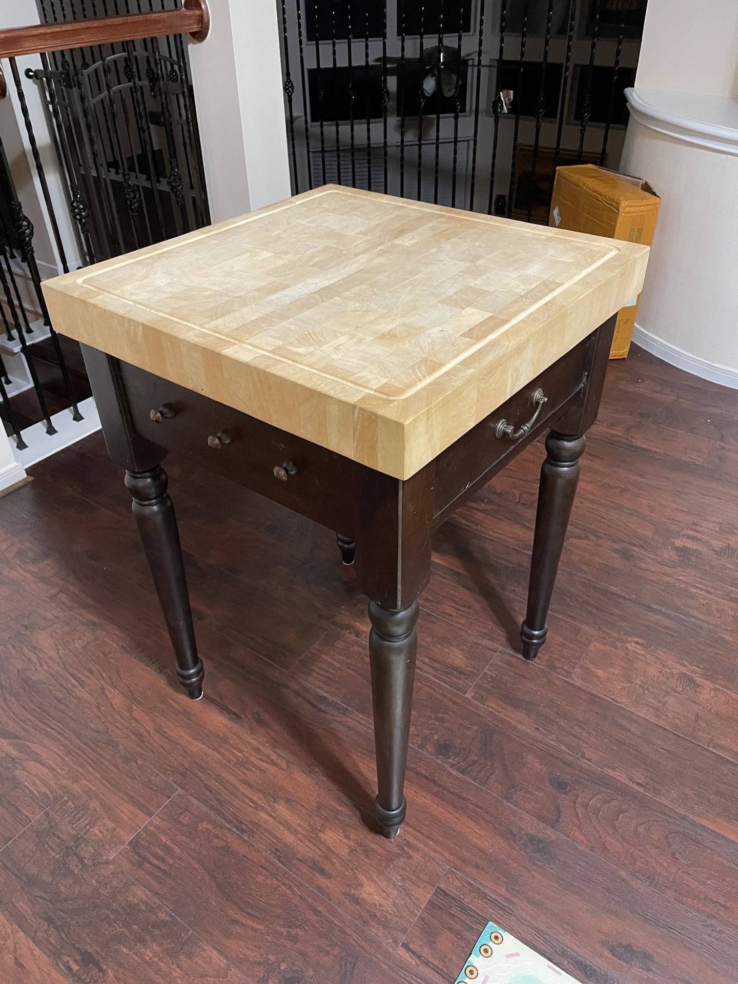 A square butcher block table/island