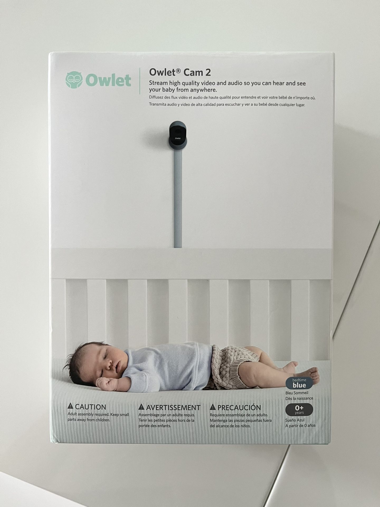 New in box Owlet can smart video baby monitor with video and audio Secure WiFi, customize cry, sound, and motion alert, two way audio and mounting kit