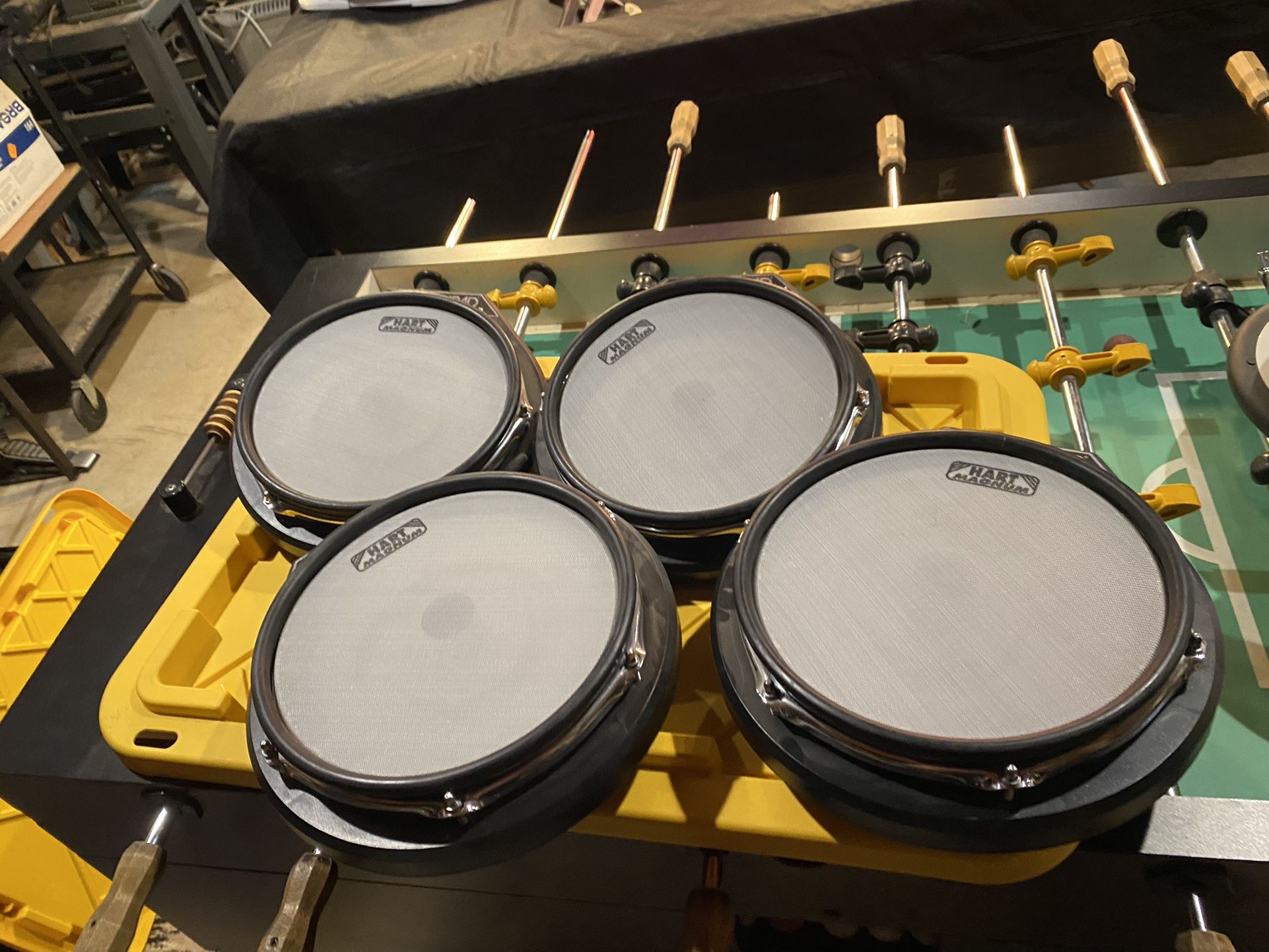 I have a set of four Hart meshed electric drum pads all work great… A great addition to any electric kit I just added the kick drum trigger to the mix