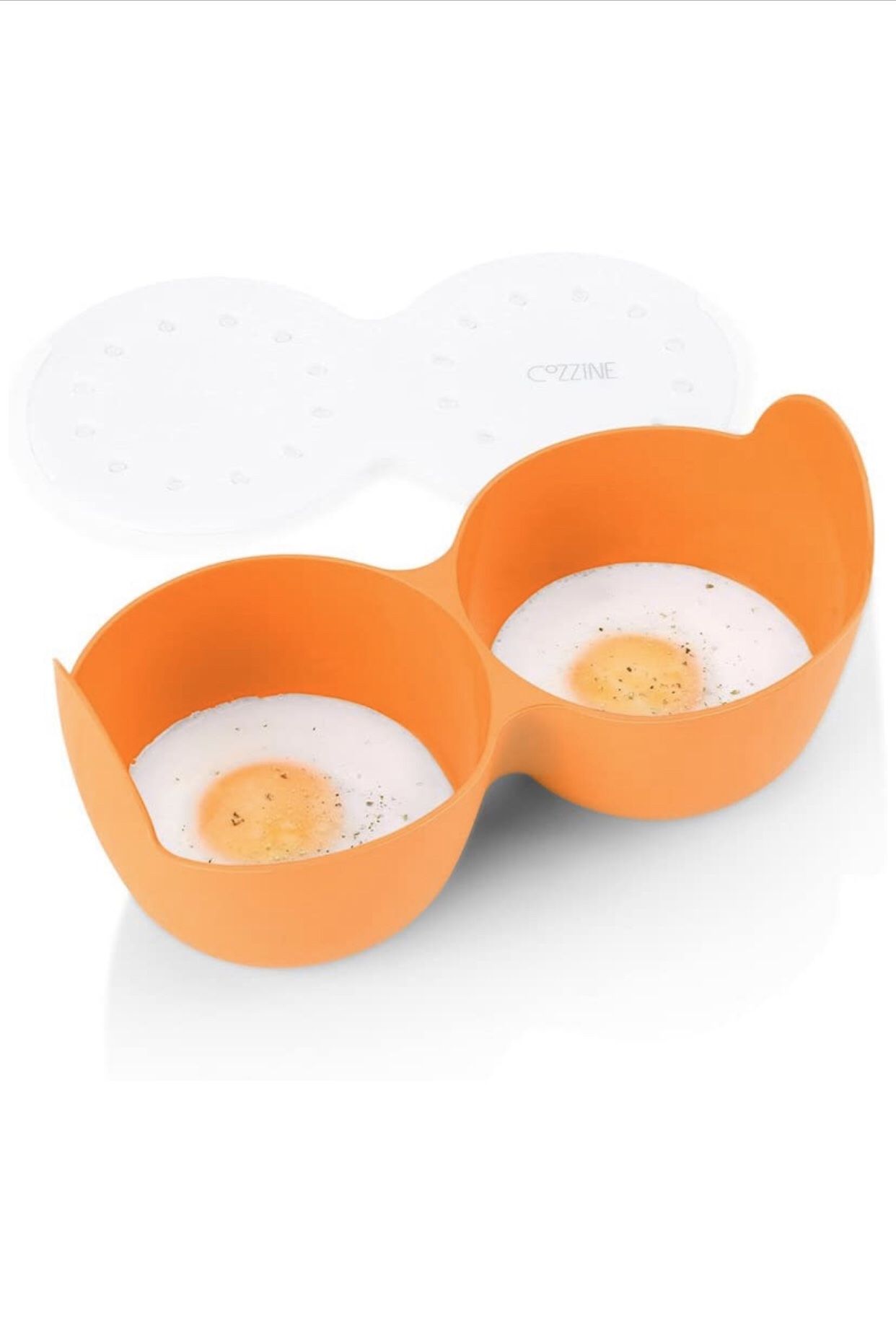 * Microwave Egg Poacher * Cozzine Silicone Egg Cooker Poaching Cups * Egg Rings for Microwave * 2 Cavity with Ring Standers * BPA Free * Orange Color * measures 6.58 x 1.69 x 3.51-inches