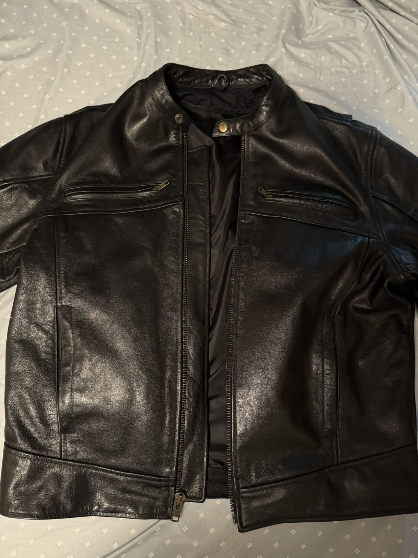 Black leather jacket in great condition. Comes with removable armor so you can wear while riding or casually. Thick genuine leather with no scuffs or tears Worn twice