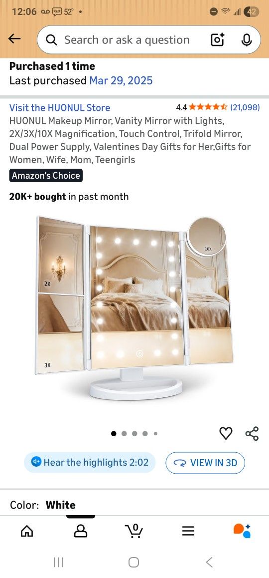 EXCELLENT CONDITION! LIKE NEW! REQUIRES 4 AAA BATTERIES (NEW BATTERIES INCLUDED) I HAVEN'T FOUND THE ROUND MAGNIFYING MIRROR. HUONUL Makeup Mirror, Vanity Mirror with Lights, 2X/3X/10X Magnification, Touch Control, Trifold Mirror, Dual Power Supply, Valentines Day Gifts for Her,Gifts for Women, Wife, Mom, Teengirls