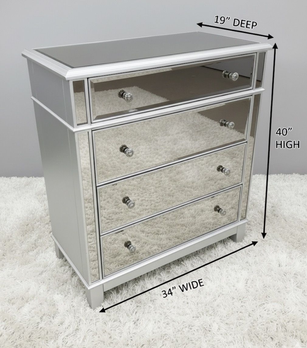 Glass Mirror Dresser 4 Easy Gliding Drawers
