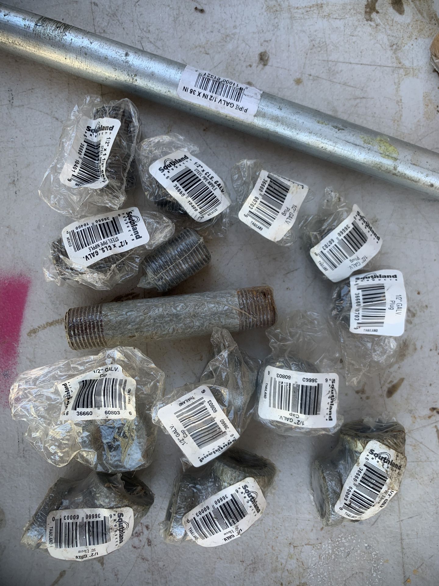 Some 3/4. Some 1/2. 38 peices total All new an unused. Galvanized