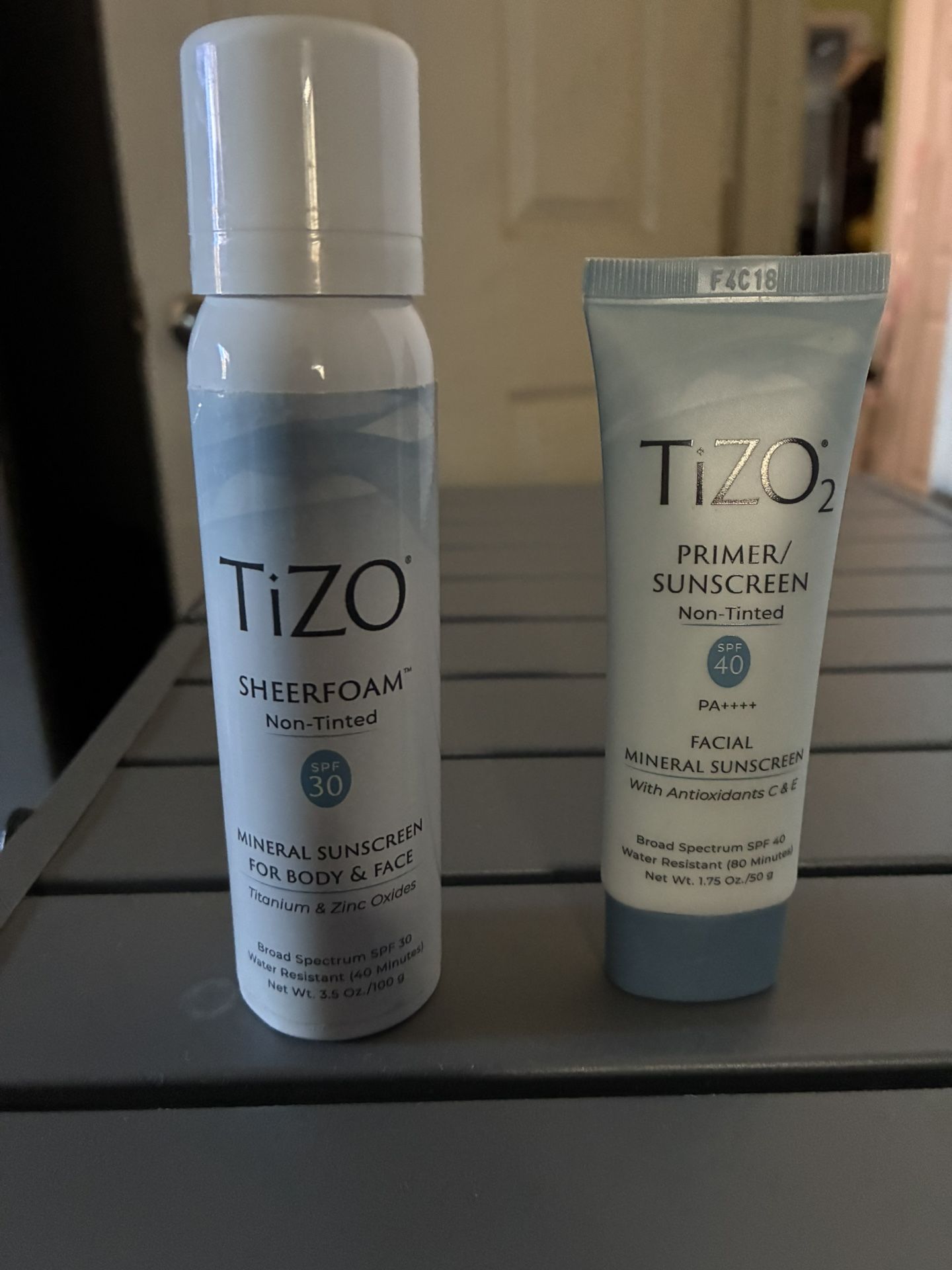 Both were used only once on face TiZO2 facial primer/sunscreen - $25 (1.7 oz, $47 new on website) TiZO spray sheer foam non tinted sunscreen - $35 (3.5 oz, $45 new on website but discontinued now)