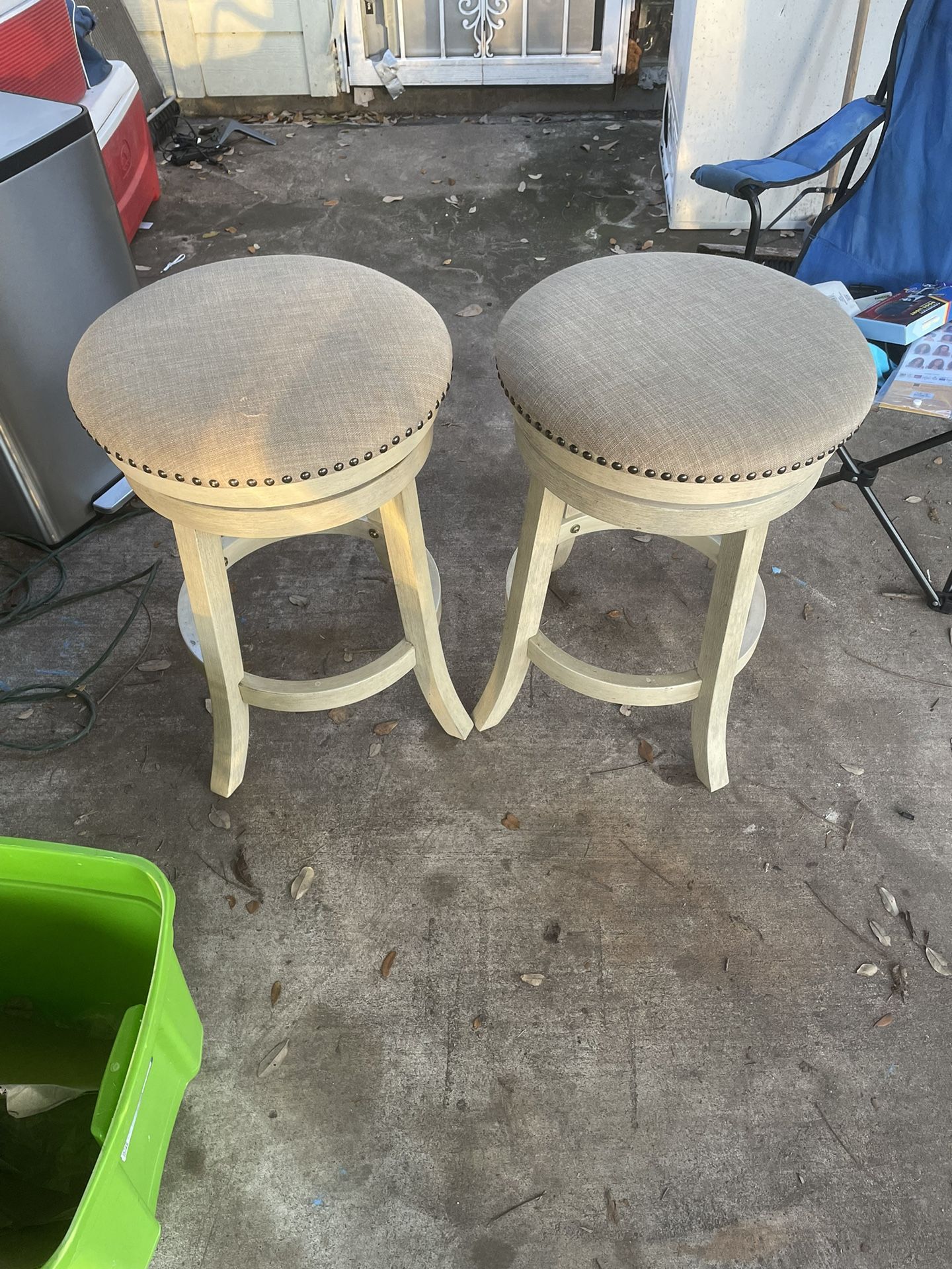 Good set of counter stools , they do swivel and they need a good cleaning but no major damage
