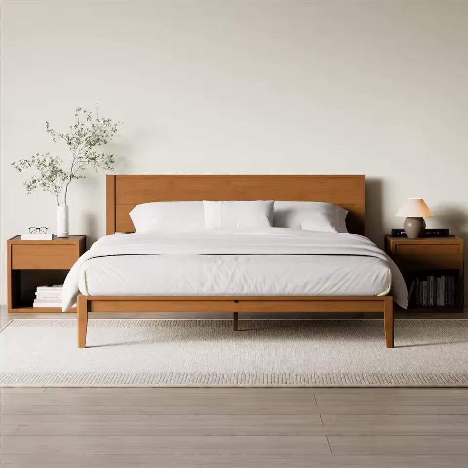 Full Size Japanese Joinery Platform Bed Frame, Mid-Century with Tall Headboard, Noise-Free Solid Bam