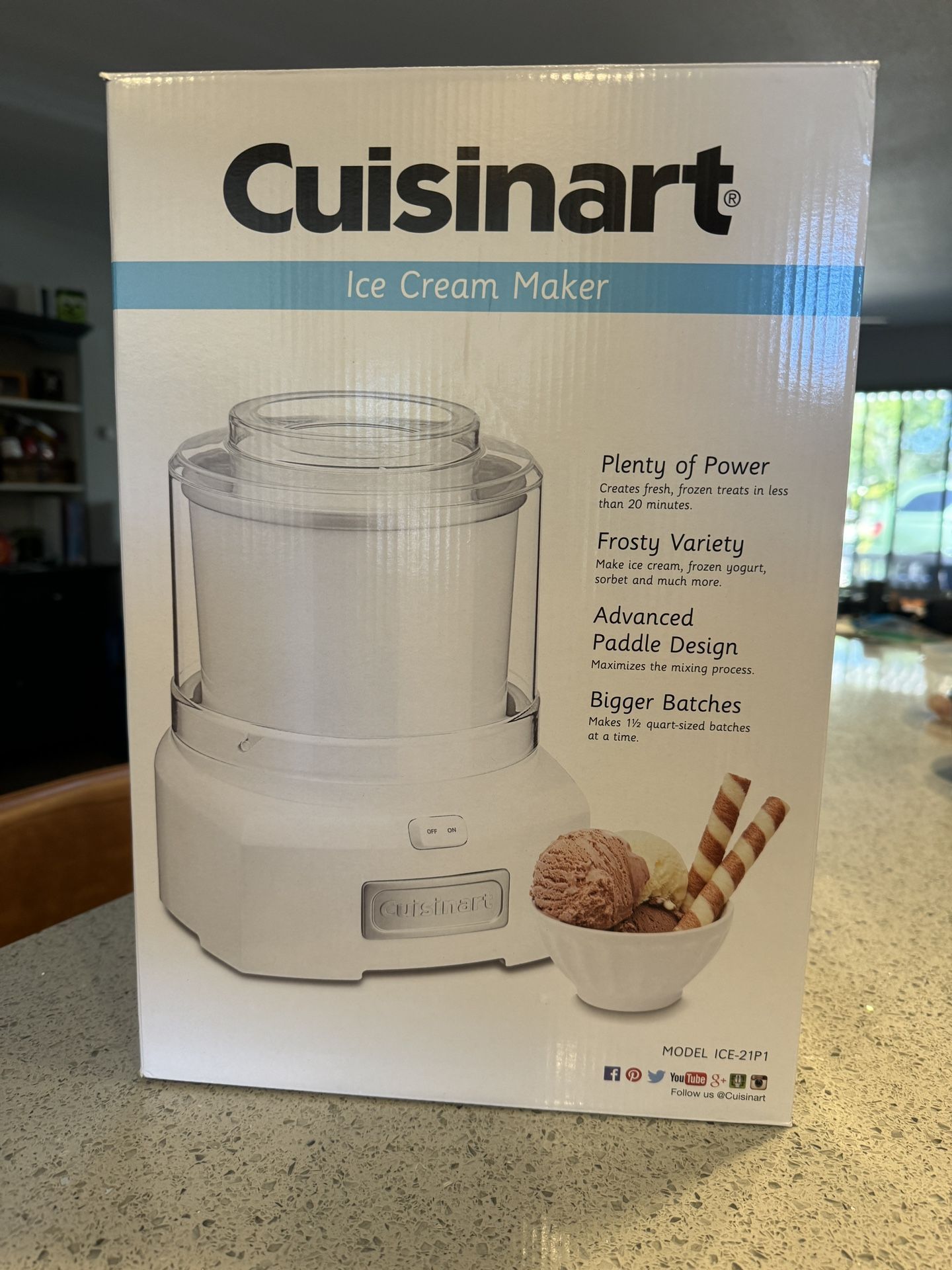 Cuisinart 1.5 quart ice cream maker. Brand new, original box, all pieces included, only used once. We got a ninja creami so i dont need this anymore. Originally $70 + extra cost for containers.
