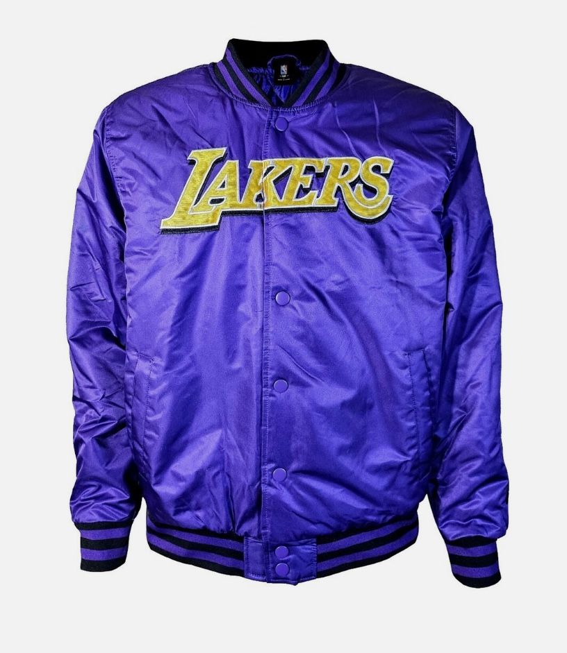 Ultra Game Men's Los Angeles Lakers Imprint Satin Button Up Bomber Jacket Large