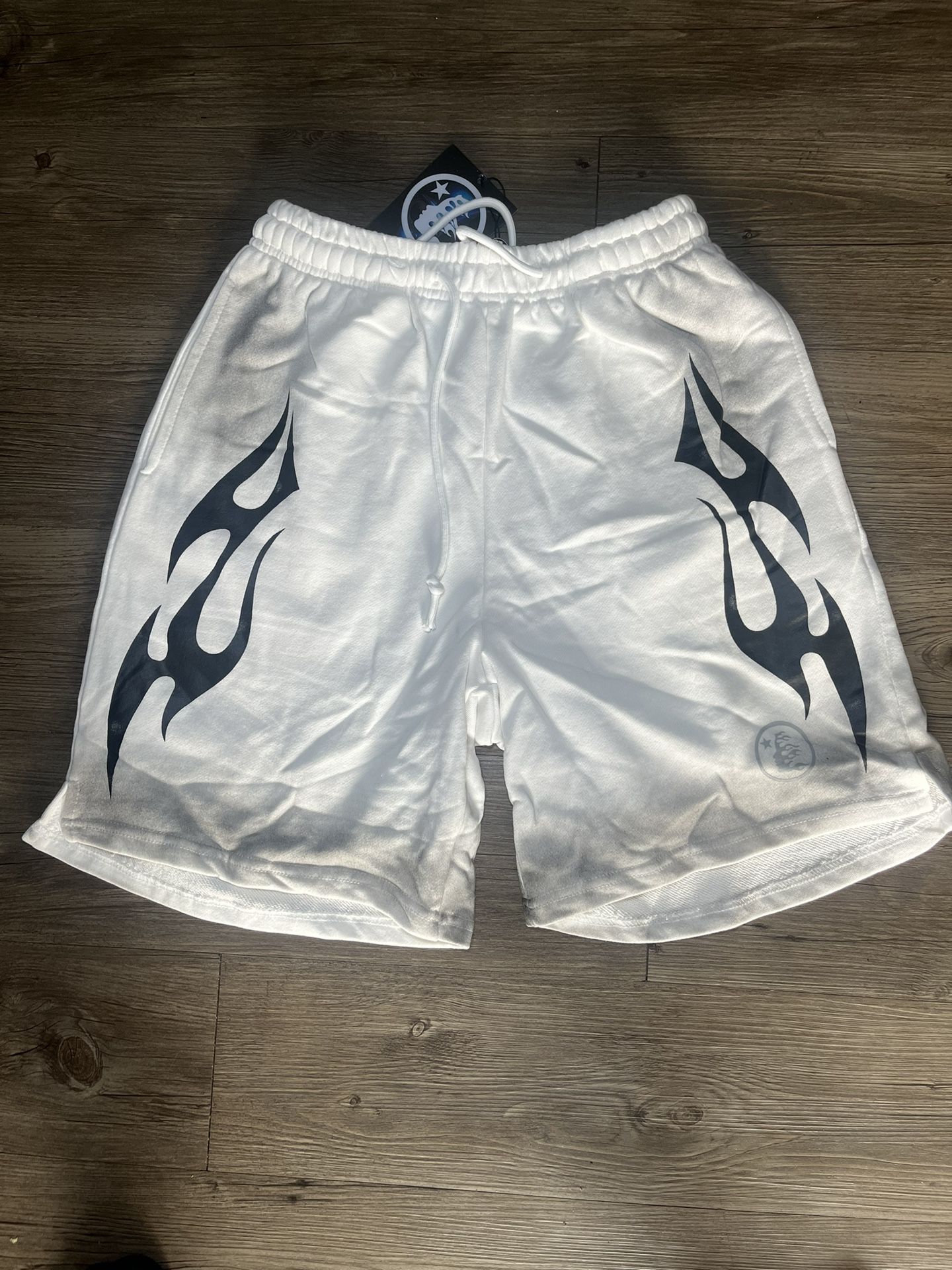 Hellstar White Shorts With Black Flames Size Medium