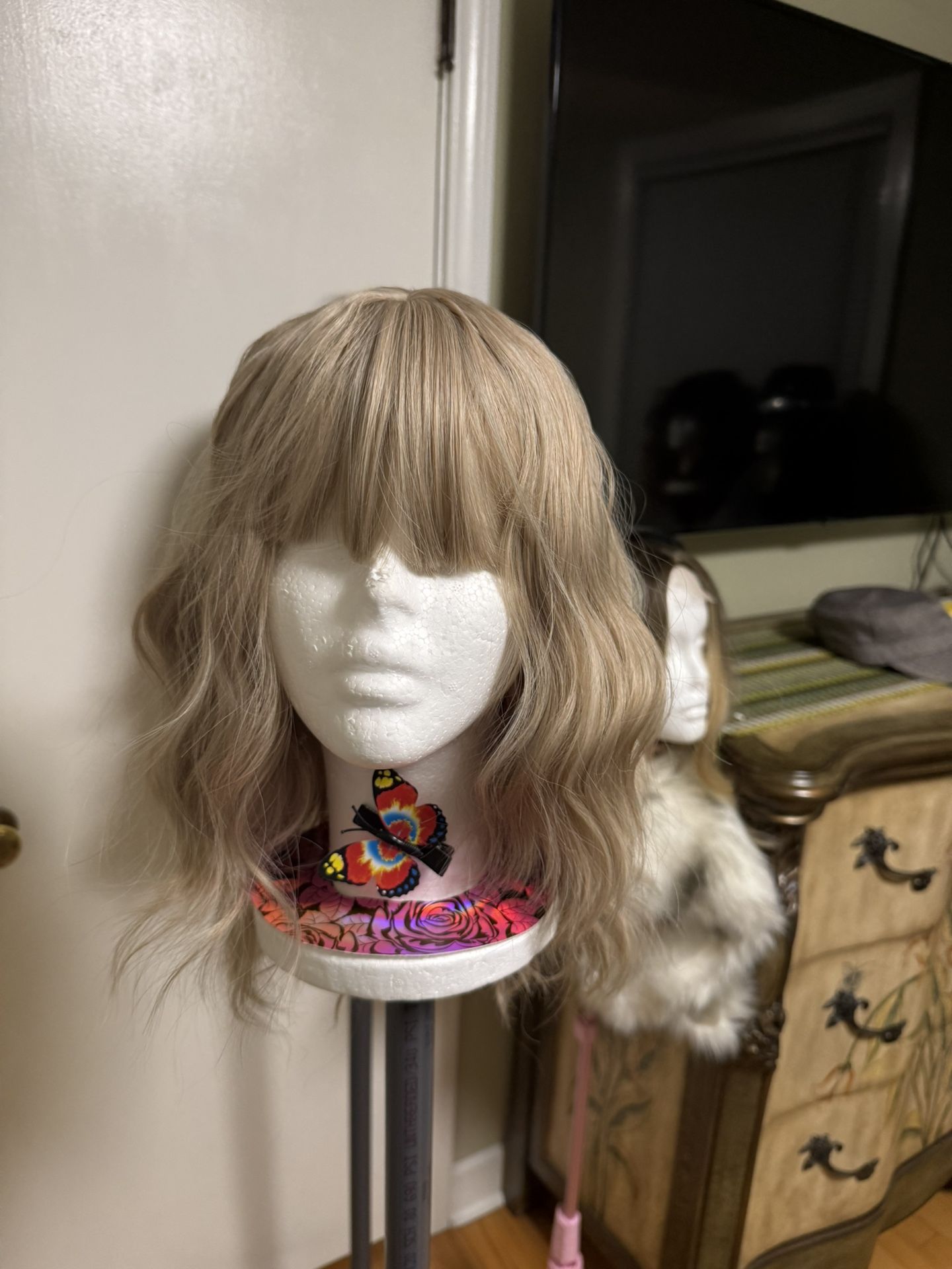 This is a pretty synthetic Ash Blonde wig , all the wigs on my listings are. NEW It’s a wavy short bob