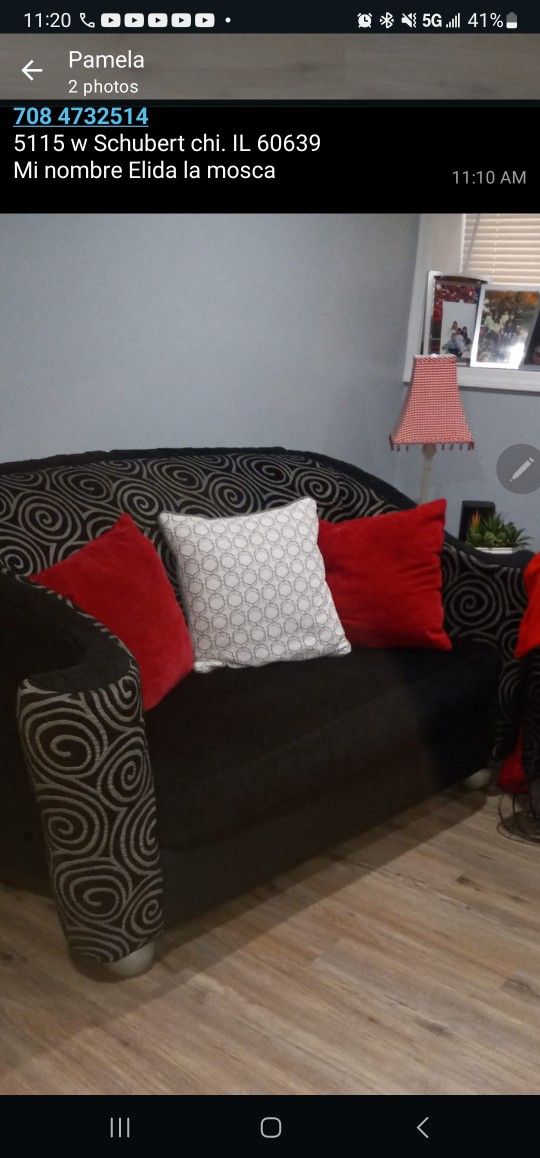One love seat, long sofa with pillows. FREE!! You have to come to pick it up