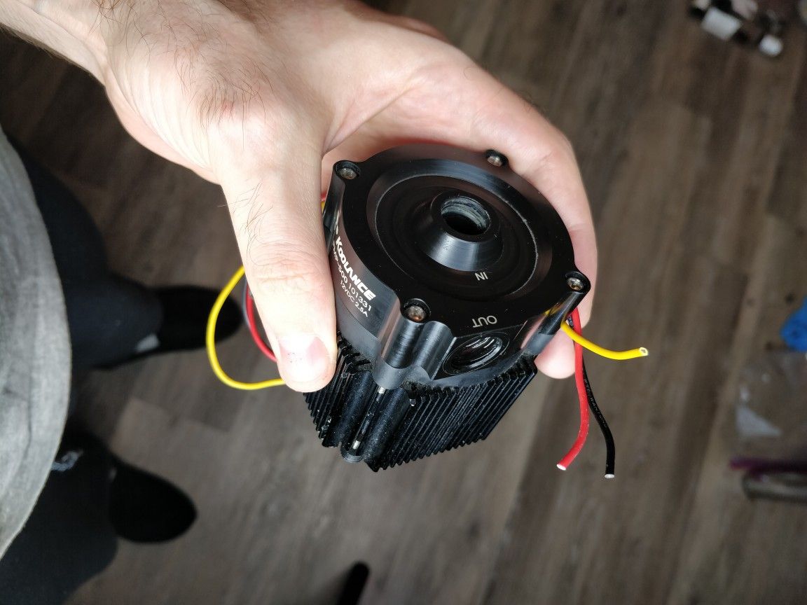 The Koolance PMP-500 offers a high flow rate and very high static head pressure at just 12V. A mounting bracket is included. Maximum Flow Rate: 16L/min (4.2 gal/min) Maximum Head Pressure: 7.5m (24.6ft) Motor: Brushless DC Power Consumption (at max): 32W Voltage Range: 6 to 12 VDC Maximum Temperature: 75°C (167°F) Electrical Connector: 4-pin Molex power supply connection + 3-pin (single lead) tach Hose Connections: G 1/4 BSPP Threads Noise: Less than 50dBA Weight: 454g (1lbs)